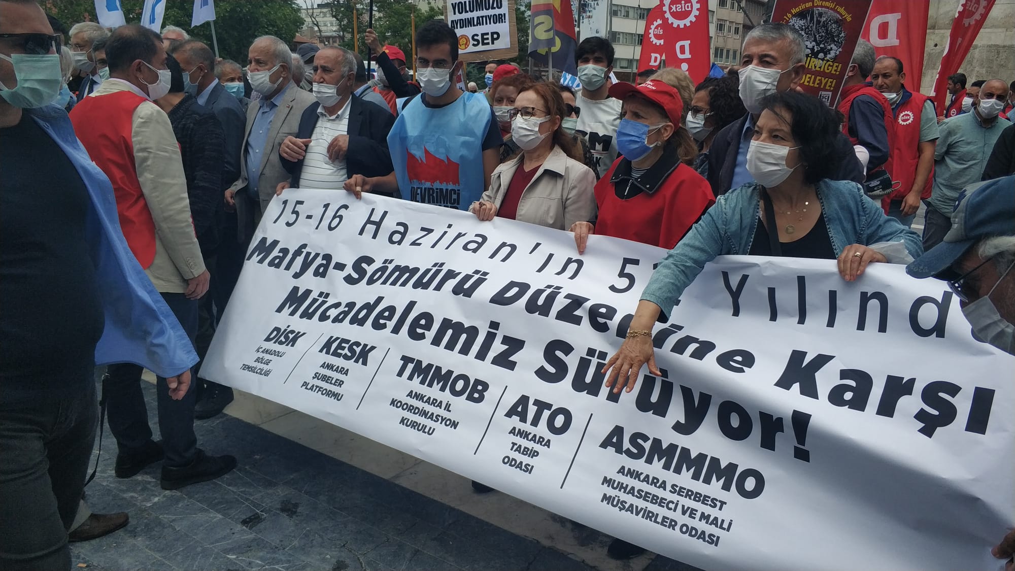15-16 Haziran direnişinin yıldönümünde Ankara’da DİSK, KESK, TMMOB, ATO ve ASMMMO, Ulus Heykel’de basın açıklaması yaptı. Toplanılmasının ardından polis, “15-16 Haziran’ın 51. yılında mafya-sömürü düzenine karşı mücadelemiz sürüyor” yazılı pankartta “mafya” ifadesi geçtiği için kaldırttı. Yurttaşlar, pankartın kaldırılmasını isteyen polise, “Siz mafyaya karşı değil misiniz?” diye tepki gösterdi