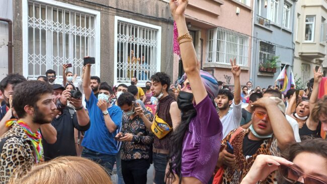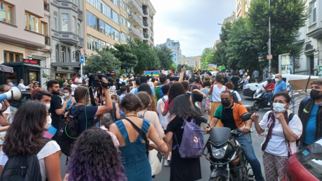 Cihangir’de bir kez daha basın açıklaması okundu. Polis Cihangir’deki eylemcileri dağıtmak için saldırıya geçince LGBTİ+’lar ara sokaklara dağıldı. Uzun süre ara sokaklarda polisle eylemciler arasında kovalamaca yaşandı ve onlarca eylemci gözaltına alındı.