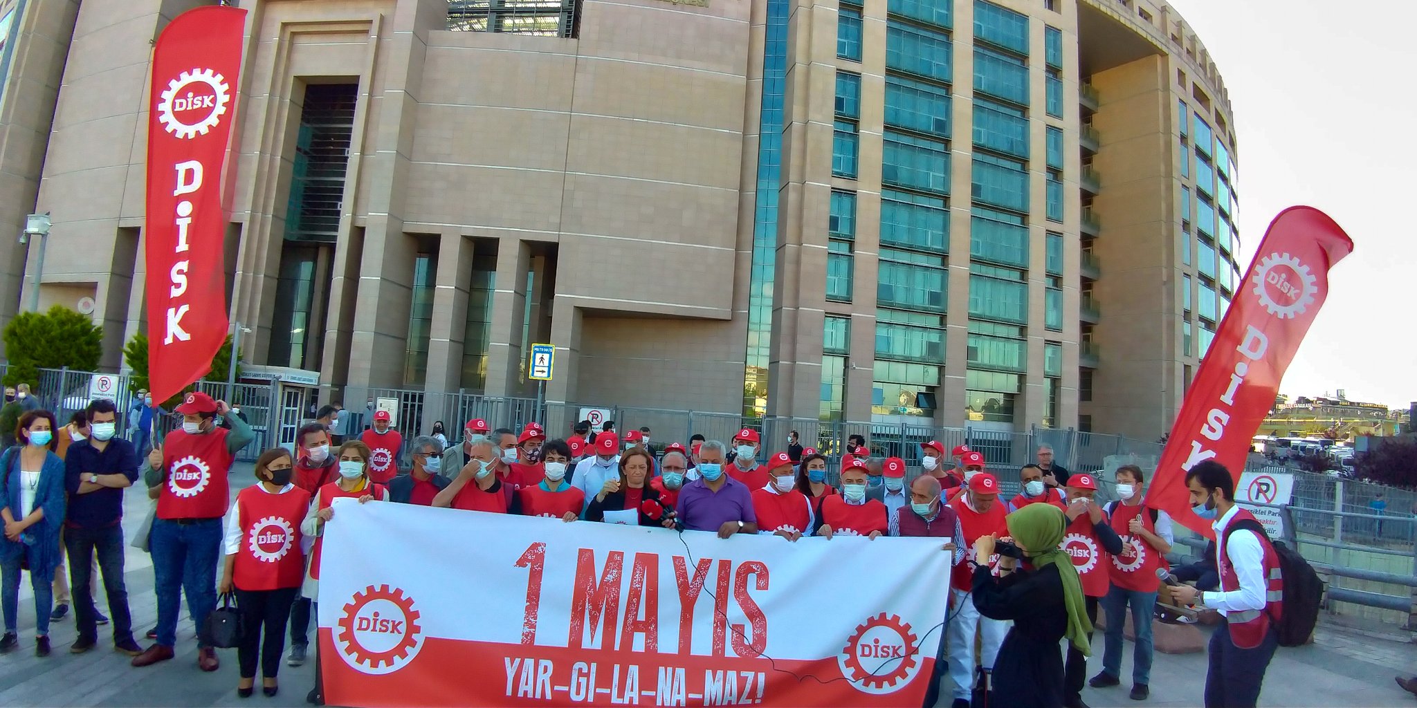 1 Mayıs 2020’de DİSK Genel Merkezi önünden Taksim 1 Mayıs Alanı’na yürümek isteyen DİSK yönetici ve üyeleri polis saldırısı ile darp edilerek gözaltına alınmıştı. Gözaltına alınan 15 kişinin yargılandığı davasının ilk duruşması Çağlayan Adliyesi’nde görüldü.