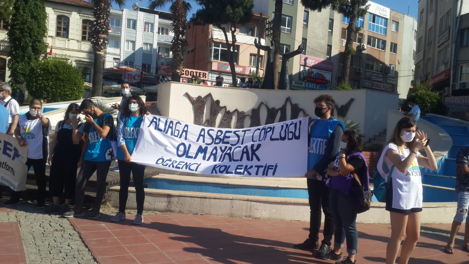 “Aliağa dünyanın çöplüğü değildir” yazılı pankart taşınan açıklamada sık sık “Asbest solumak istemiyoruz”, “Aliağa asbest çöplüğü değildir” sloganları atıldı. ALÇEP ve EGEÇEP adına açıklamayı Özgül Çağlar ve Erhan İçöz okudu.