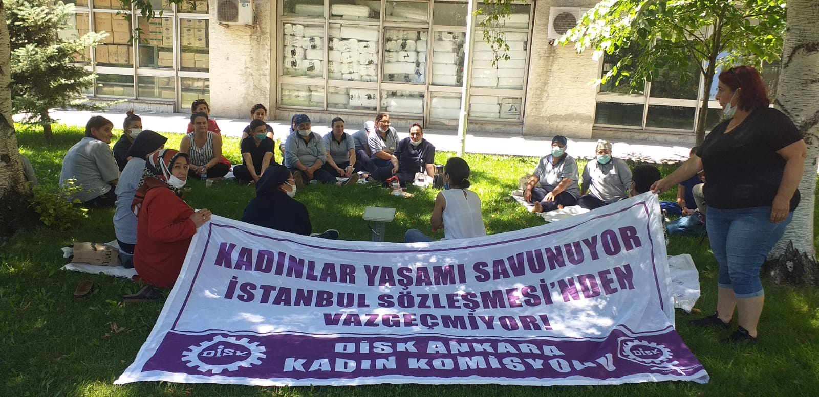 Devrimci Sağlık İşçiler Sendikası, Sağlık ve Sosyal Hizmet Emekçileri Sendikası ve DİSK Ankara Kadın Komisyonu’nun çağrısıyla, Ankara’da İbni Sina Hastanesi’nin arka bahçesinde kadınların hakları, yaşanılan sorunlar ve İstanbul Sözleşmesi’nin konuşulduğu bir etkinlik yapıldı.