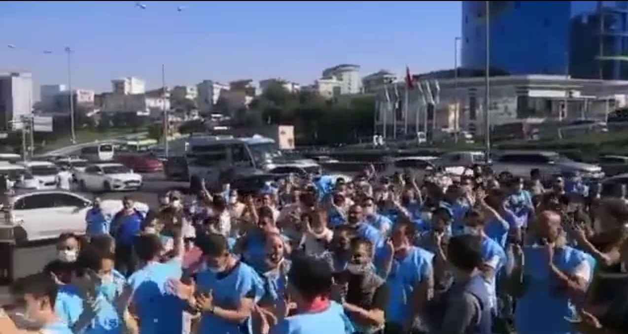 Türk-İş’e bağlı TES-İŞ ile EnerjiSA arasındaki toplu iş sözleşmesi sürecinde EnerjiSA’nın işçilere yüzde 6+5 zam önermesinin ardından işçiler EnerjiSA önünde toplandı