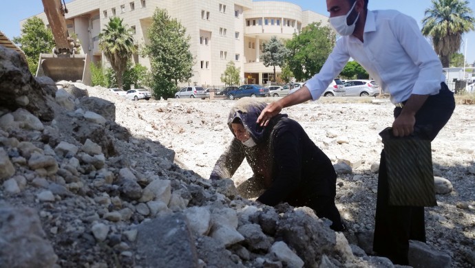 Emine Şenyaşar adalet arayışının 88'inci gününde Urfa Adliyesi'nin önünde toprağı kazıyarak haykırdı: