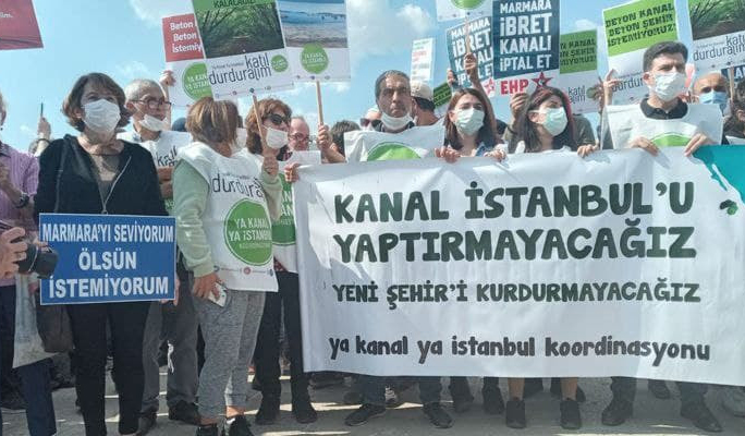 Ya Kanal Ya İstanbul Koordinasyonu da 5 Haziran Dünya Çevre Günü’nde “Kanal İstanbul” projesine karşı bir dizi eylem, etkinlik düzenledi. “Kanal İstanbul’u yaptırmayacağız, Yeni Şehir’i kurdurmayacağız” diyen yaşam savunucuları ellerinde “Beton Kanala Hayır” yazılı dövizler taşıdı. Marmara’daki deniz salyası sorununa da işaret eden yaşam savunucuları “Marmara Denizi ölüyor, günlerdir videoları her yerde, deniz salyasının altında denizin canlı yaşamının durumunun ne kadar kötü olduğu henüz anlaşılabilmiş değil, bilim insanları, oksijensiz Karadeniz Marmara’ya bağlandığında yıkımın sonuçları sıçramalı olarak, kat be kat artacağını söylüyor” dedi.