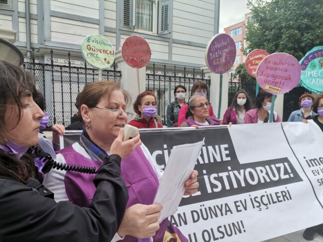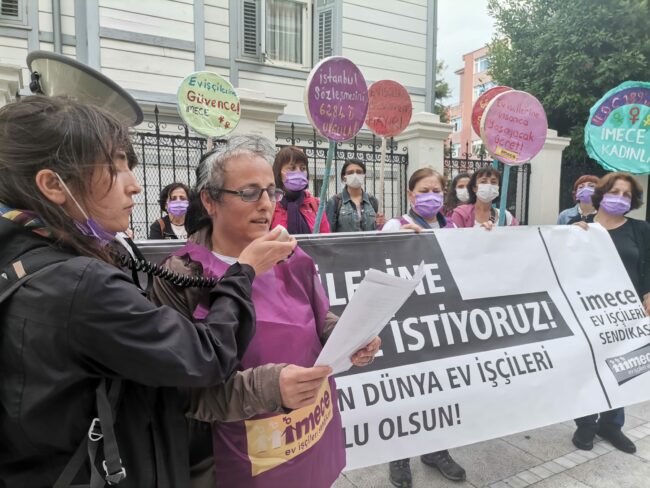 İmece Ev İşçileri Sendikası, Dünya Ev İşçileri Günü nedeniyle güvence talebiyle İstanbul, Bursa ve Antalya’da eylem yaptı