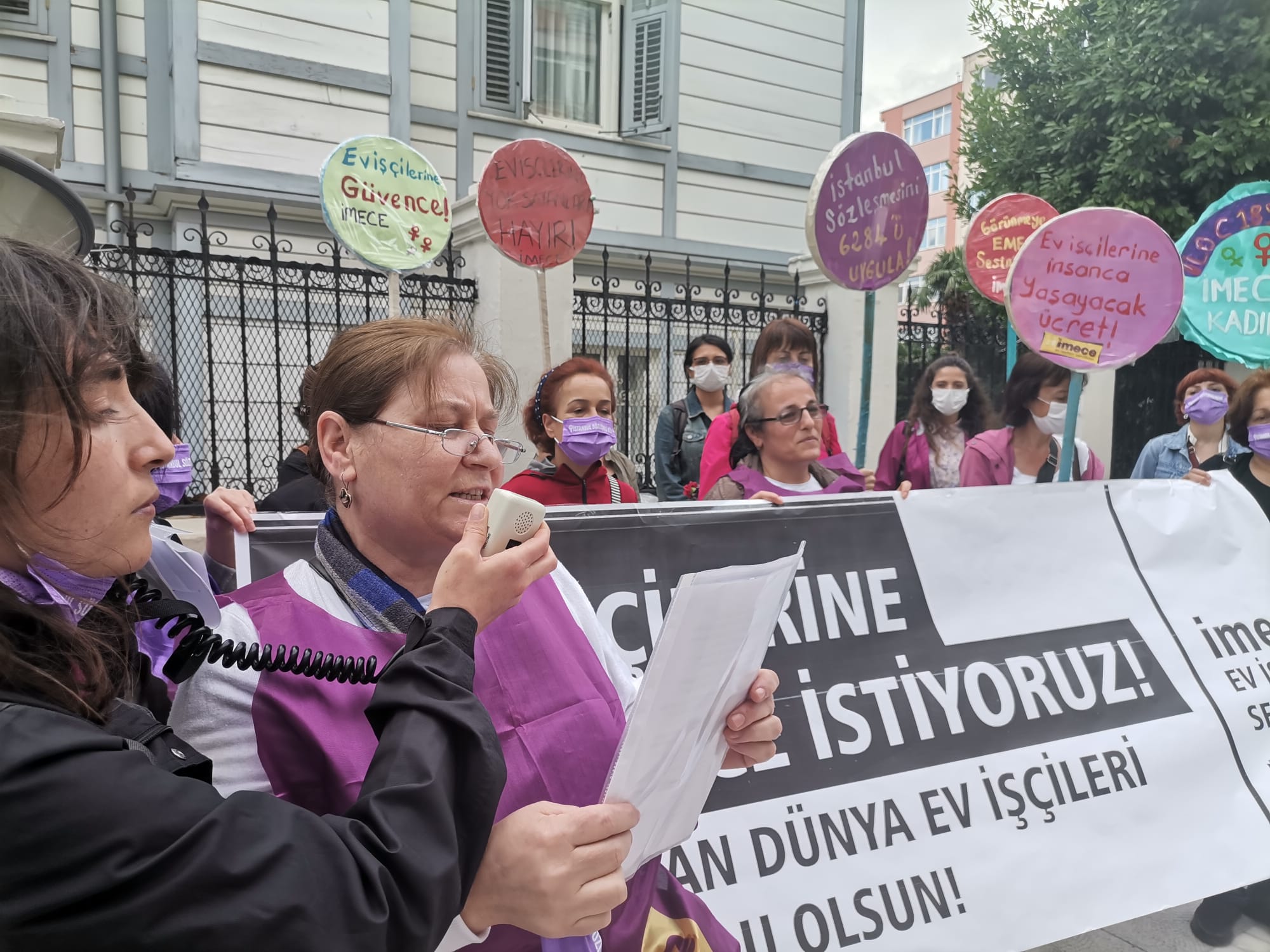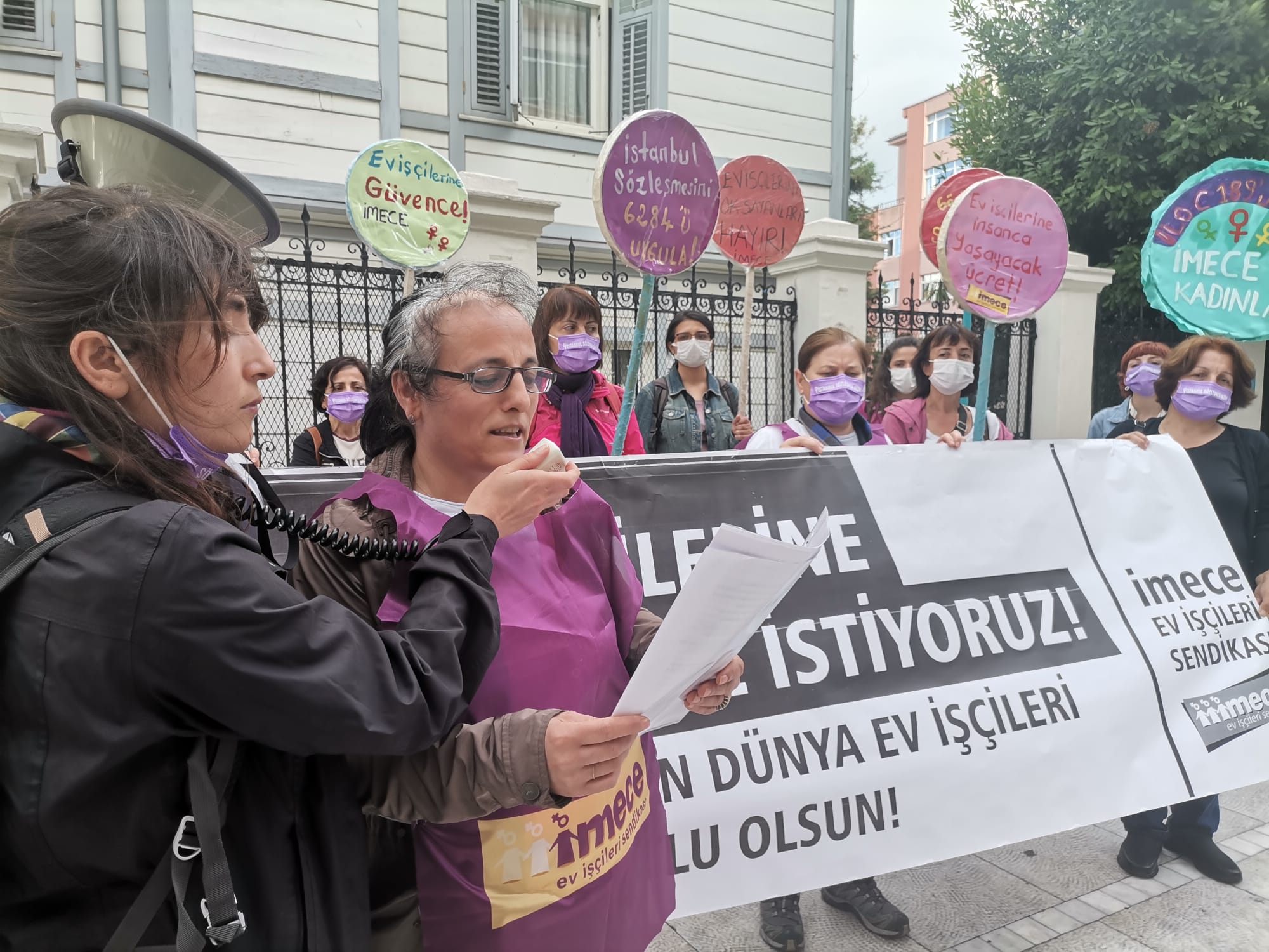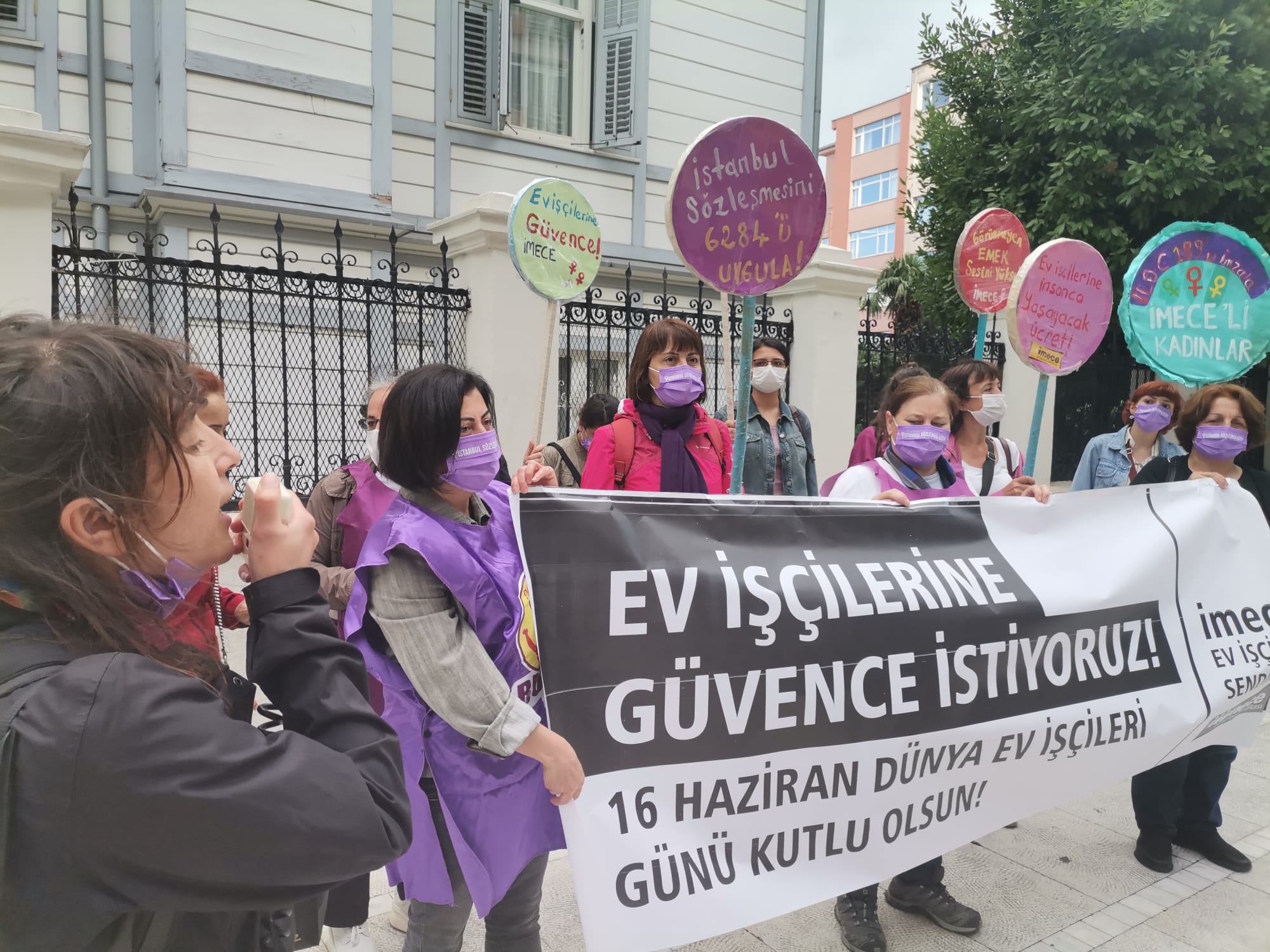 Kadıköy Süreyya Operası önünde saat 19.00’da bir araya gelen sendika üyeleri ellerinde “Ev işçilerine güvence istiyoruz” yazılı pankart taşıdı. Kadınlar ellerinde “İstanbul Sözleşmesi uygulansın. 6284’ü uygula!”, “Ev işçilerine insanca yaşayacak ücret” ve “Görünmeyen emek sesini yükselt” yazılı dövizler tuttu.