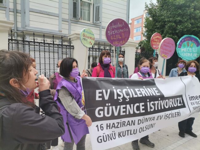 Bugün 16 Haziran dünyada ev işçileri, sokakta taleplerini haykırıyor. Hala birçoğumuz iş güvenliğinden yoksun ve kayıt dışı çalışmaya devam ediyoruz. Türkiye ILO’nun C 189 nolu ‘”ev işçilerine insanca iş sözleşmesi’”ni hala imzalamadığı gibi ilk imzaladığı İstanbul Sözleşmesi’nden de çekilme kararı aldı. İstanbul Sözleşmesi uygulansa ev işçilerini de koruyacaktı. İstanbul Sözleşmesi’nden tek adamın kararıyla çıkılması biz ev işçilerinin can güvenliğini tehdit ediyor.