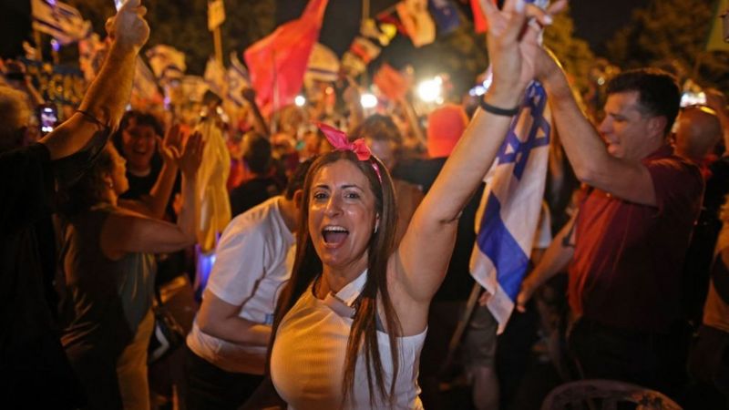 Öte yandan koalisyon hükümetinin güvenoyu almasının ardından çok sayıda İsrailli de sokağa döküldü.