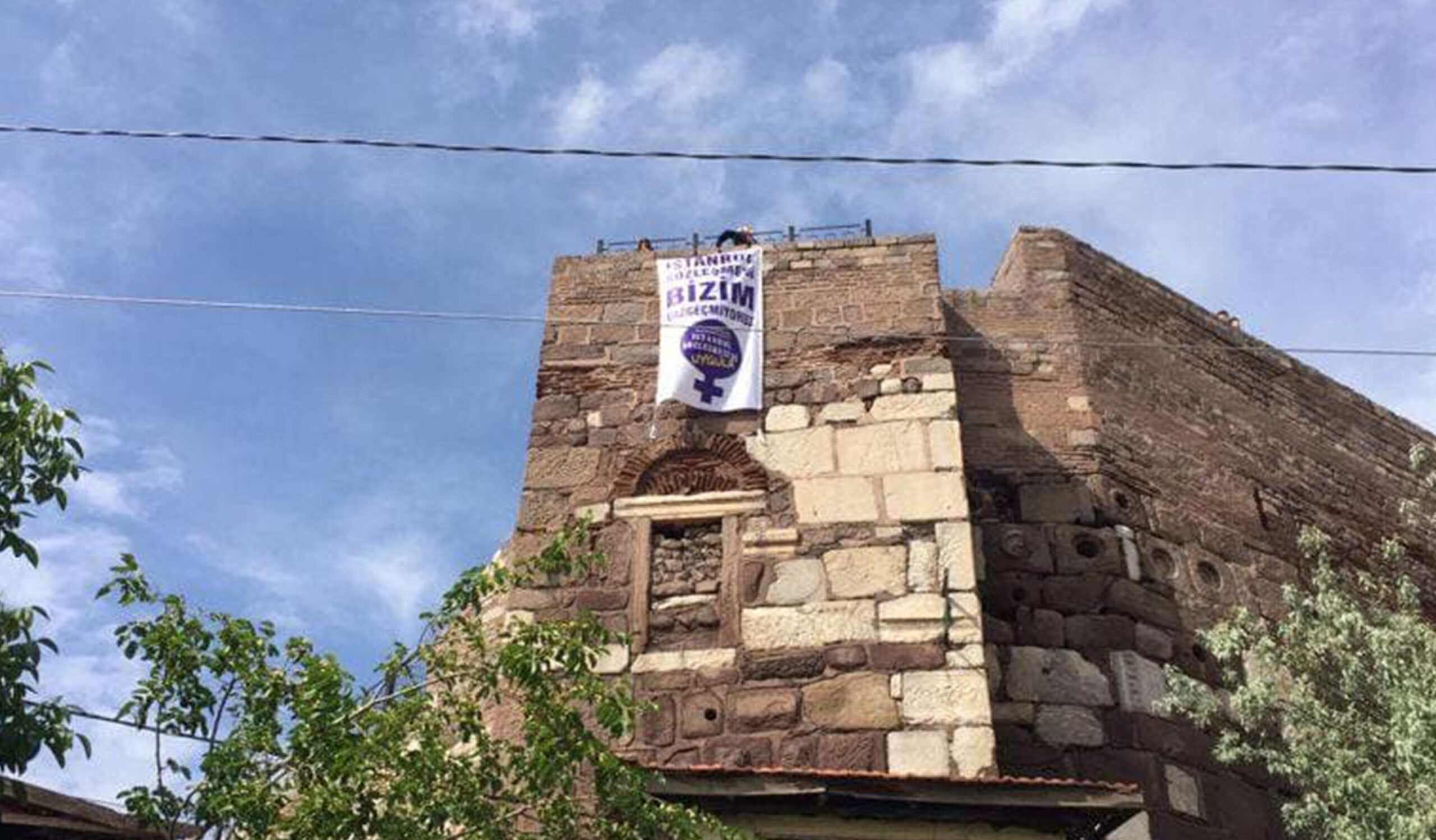 İstanbul Sözleşmesi’ni Uygula Ankara Kampanya Grubu, bugün (8 Haziran) Ankara Kalesi’ne üzerinde “İstanbul Sözleşmesi bizim, vazgeçmiyoruz” yazılı pankart astı.