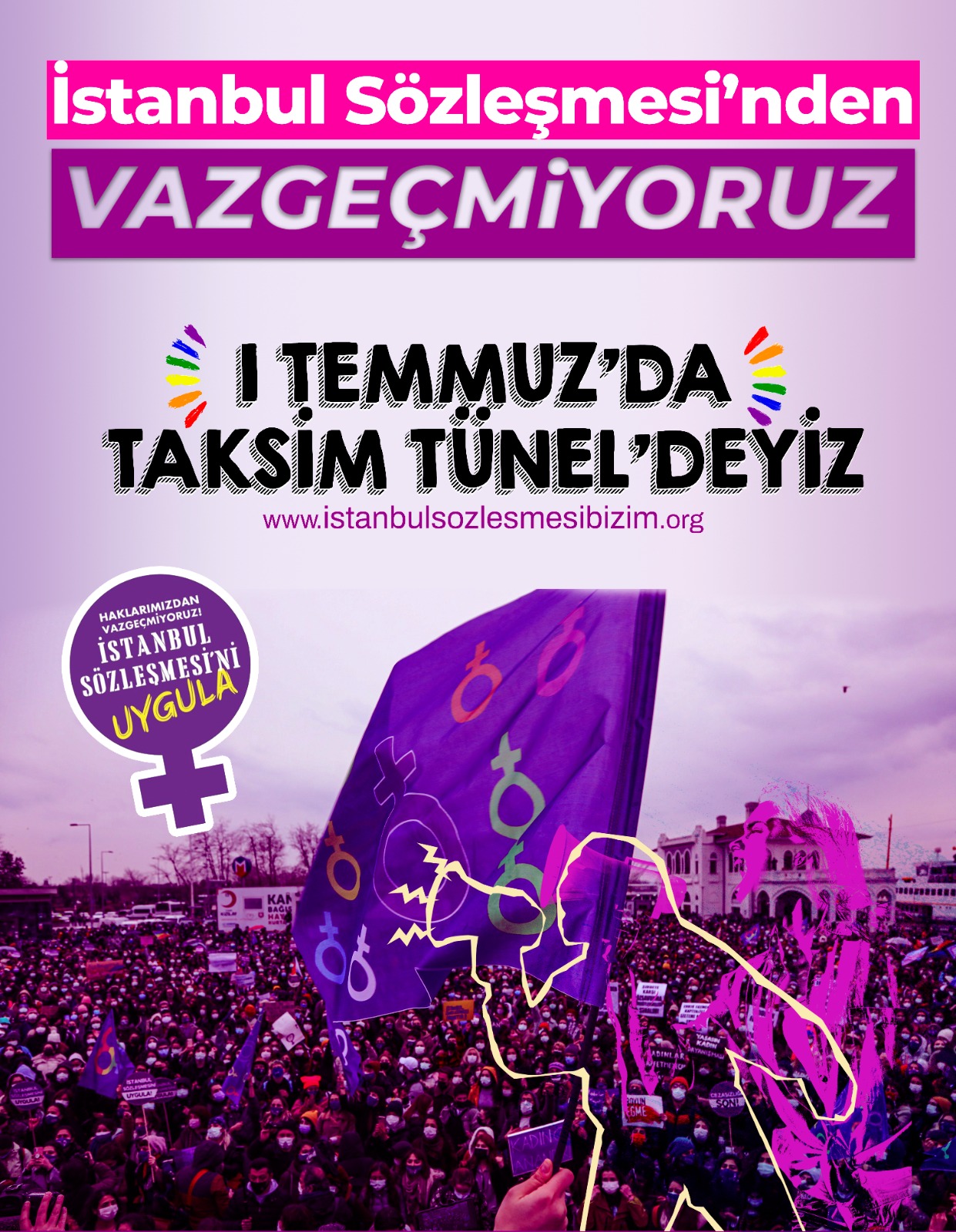 Kadınlar İstanbul Sözleşmesi’nin imzaya açılmasının 10. yıldönümünde açtıkları sitede fotoğraf filtresi oluşturmuşlardı. Yoğun ilgi gören filtreyi çok sayıda kişi kullanarak sosyal medyada filtreli fotoğraflarını paylaşmıştı. Filtre 1 Temmuz’da saat 19.00’da Taksim Tünel’e yapılan çağrı eklenerek değiştirildi. Kadınlar ve LGBTİ+’lar filtreli fotoğraflarını sosyal medyada paylaşarak Taksim çağrısı yaptı.