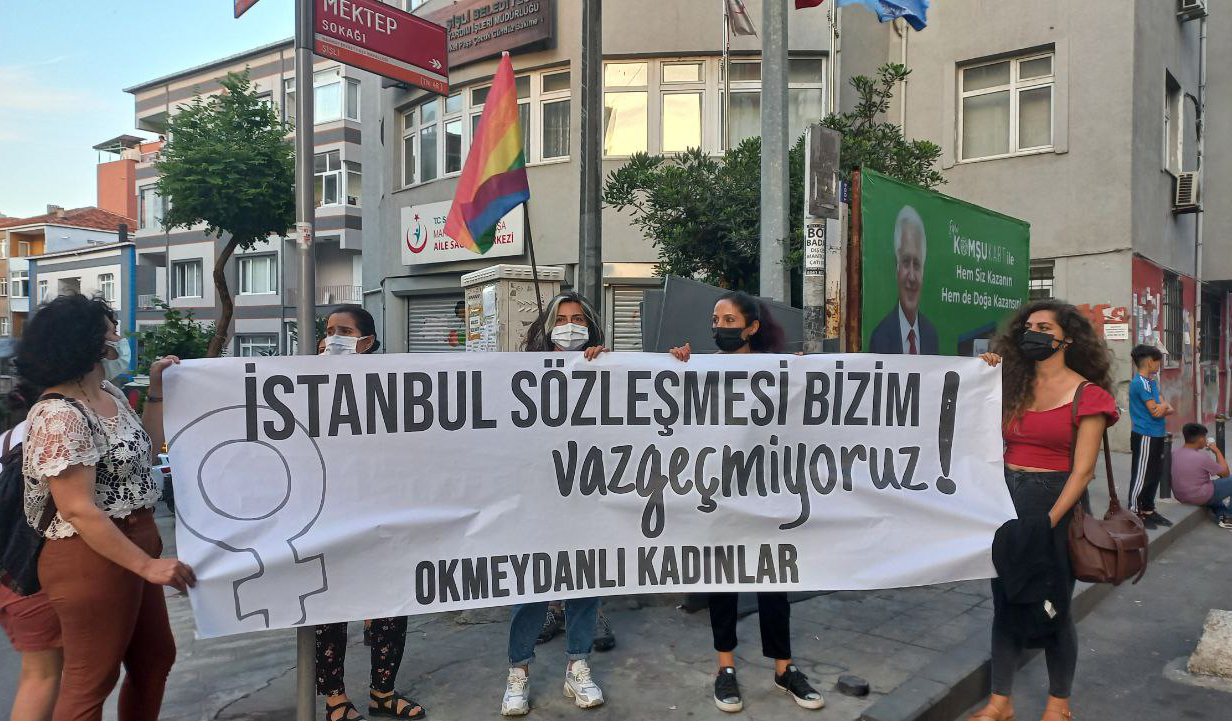 İstanbul Sözleşmesi’ni Uygula Kampanya Grubu’nun çağrısıyla toplanan Okmeydanlı kadınlar ellerinde “İstanbul Sözleşmesi bizim, vazgeçmiyoruz” yazılı pankart tutarak yoğun polis ablukası altında eylemlerini yaptı. Kadınlar 1 Temmuz’da Taksim Tünel’de yapılacak eyleme çağrı yaptı.
