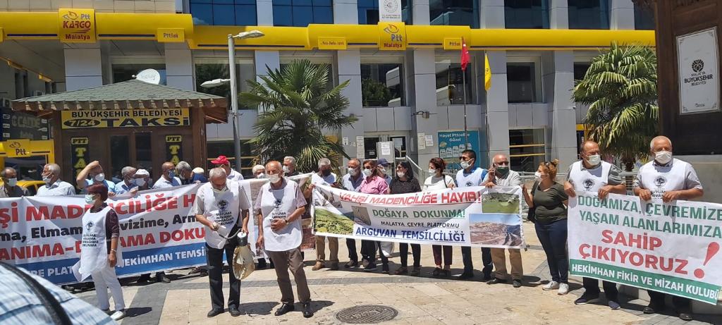 Malatya Çevre Platformu Merkez PTT önünde buluşup, 5 Haziran Dünya Çevre Günü’nde bir basın açıklaması yaptı. Malatya Çevre Platformu Yürütme Kurulu üyesi Süheyla Kavukçu, basın açıklamasını okudu. Yapılan açıklamada 8 aydır Malatya’da doğaya ve yaşam alanlarına sahip çıkma mücadekesi verildiği belirtilirken COVID-19 pandemisinin 5 Haziran Dünya Çevre Günü’nün bir “gün” olmaktan öte gitmediğini gösterdiği vurgulandı.