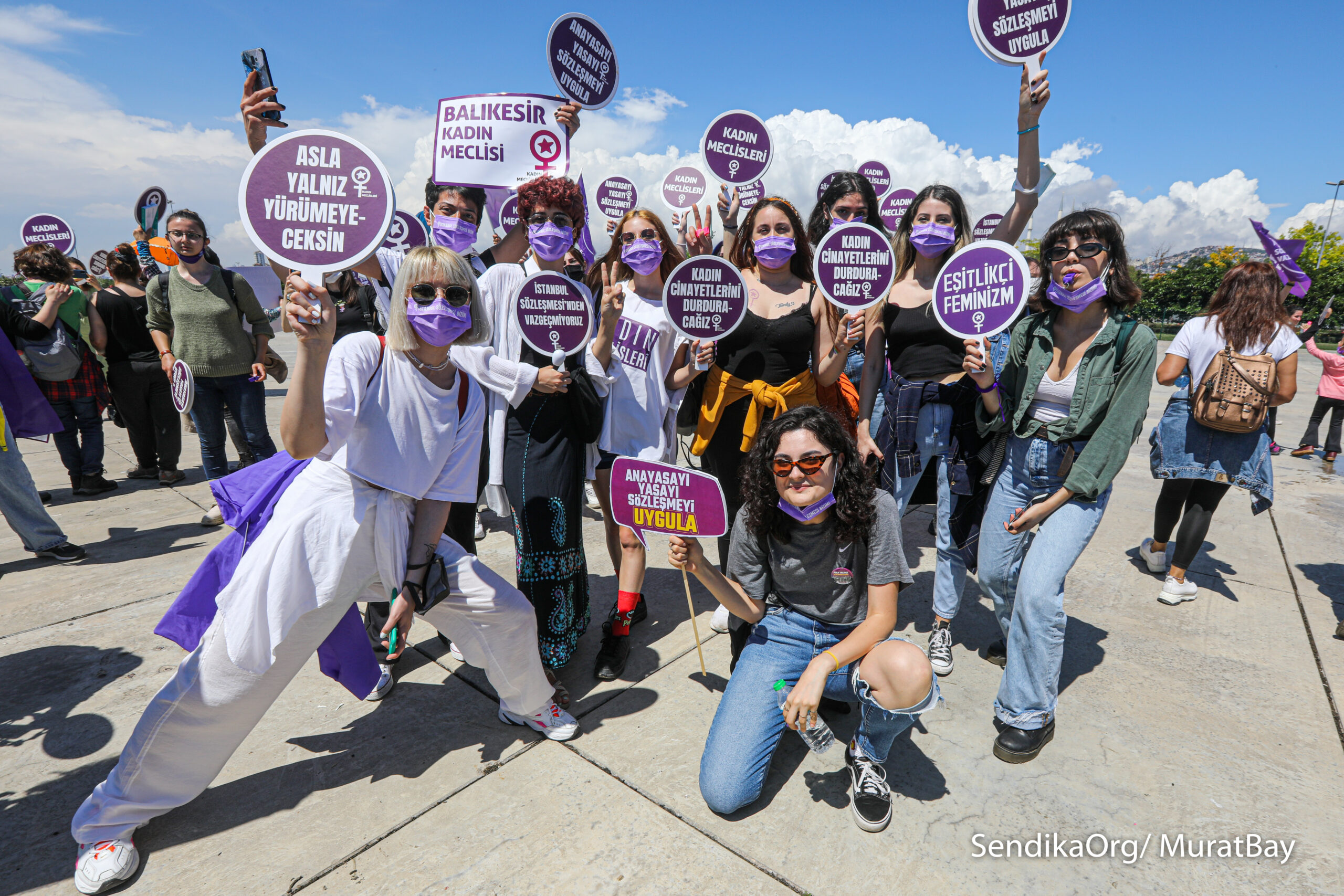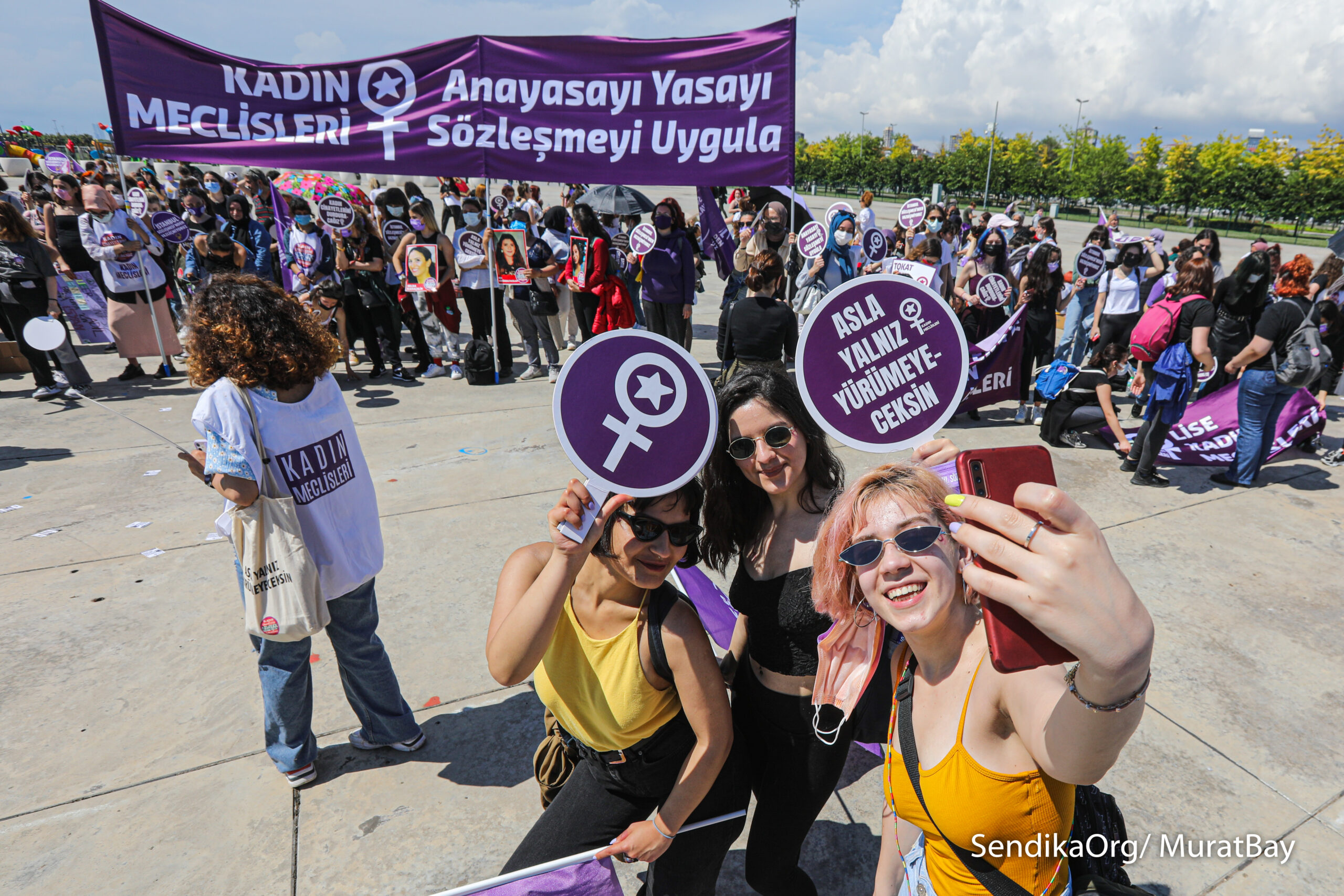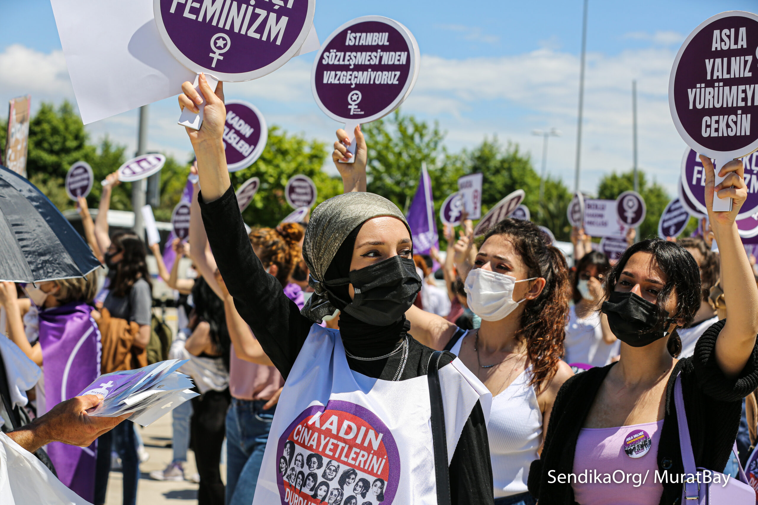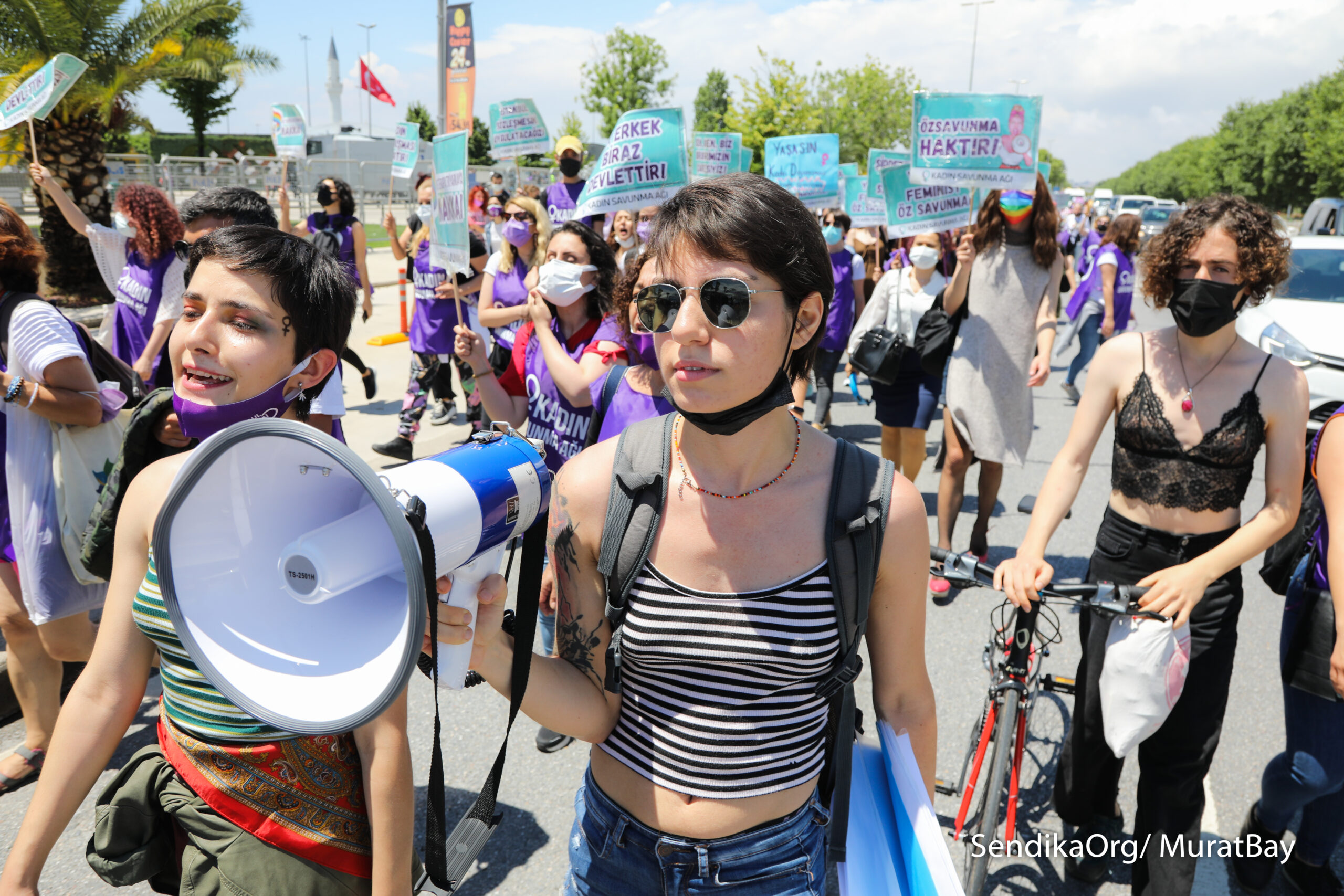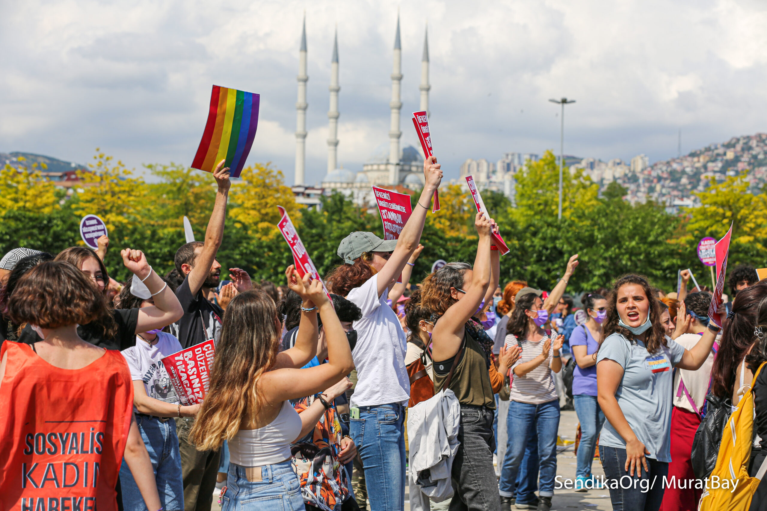 Türkiye’nin dört bir yanından İstanbul’a gelen kadınlar ve LGBTİ+’lar Avrupa Konseyi’nin Türkiye için İstanbul Sözleşmesi’ni feshedeceği 1 Temmuz öncesi Maltepe’de buluştu. “Haklarımızdan, hayatlarımızdan vazgeçmiyoruz” diyerek bir araya gelenler dün (19 Haziran) çeşitli yerlerden yürüyüşlerle gelerek Maltepe’de miting yaptı. Mitingi yerinde takip eden Sendika.Org muhabiri Murat Bay’ın objektifinden kadınların ve LGBTİ+’ların Maltepe buluşması