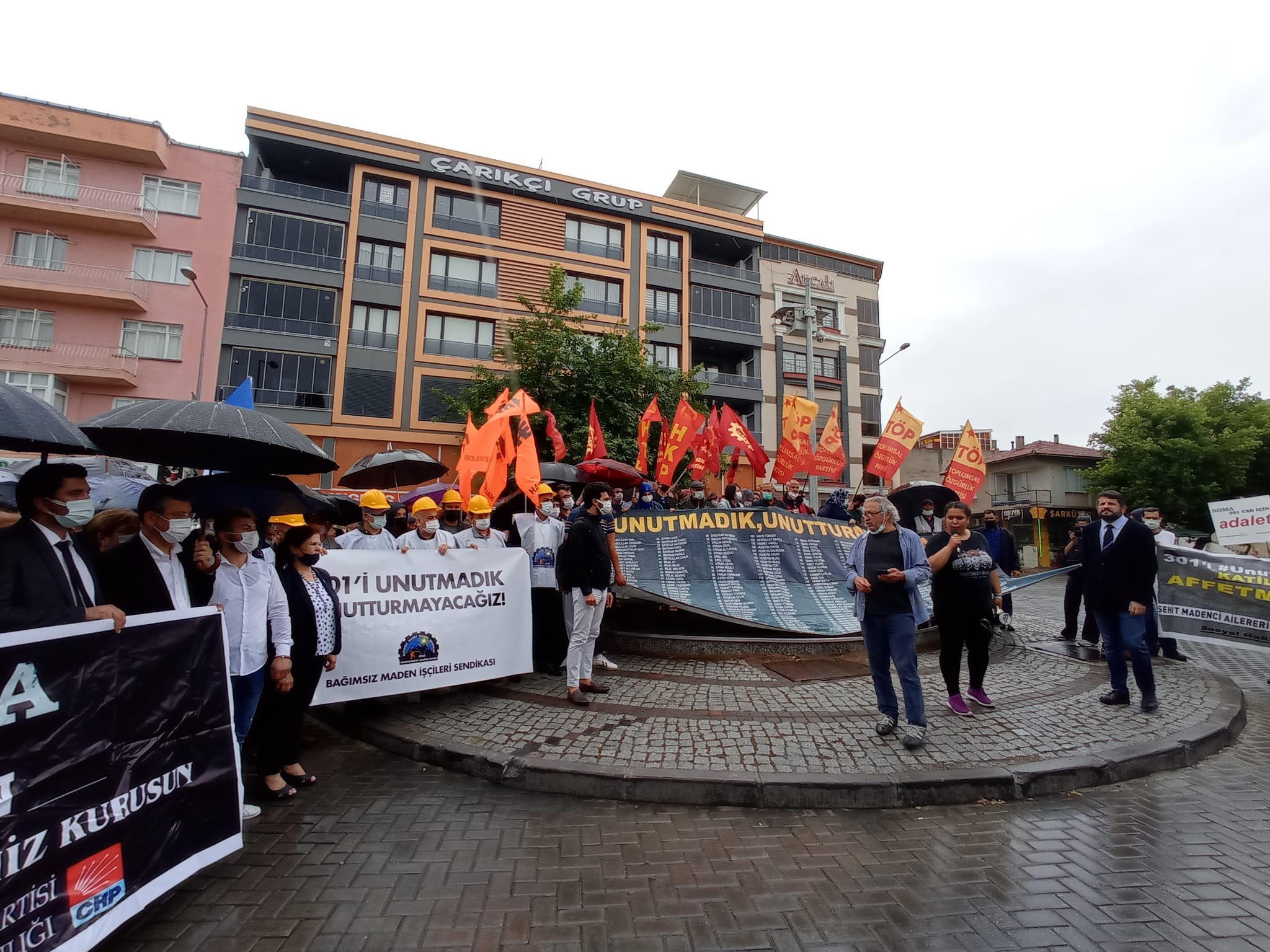 13 Mayıs 2014’te Soma’da gerçekleşen ve 301 madencinin ysaşamını yitirdiği katliamın davasının karar duruşması görülmeye başlandı. Halkevleri, Öğrenci Kolektifleri, Türkiye İşçi Partisi, Toplumsal Özgürlük Partisi, Türkiye Komünist Partsi, Emek Partisi, Çağdaş Hukukçular Derneği, Bağımsız Maden İş Sendikası, katledilen madencilerin ailelerin katılımıyla bir yürüyüş yapıldı. Katledilen madencilerinin isimlerinin yazılı olduğu bir pankart açılarak basın açıklaması yapıldı. Bağımsız Maden İş Sendikası’ndan Kamil Kartal ve Av. Can Atalay’ın yaptığı açıklamanın ardından duruşmaya geçildi.