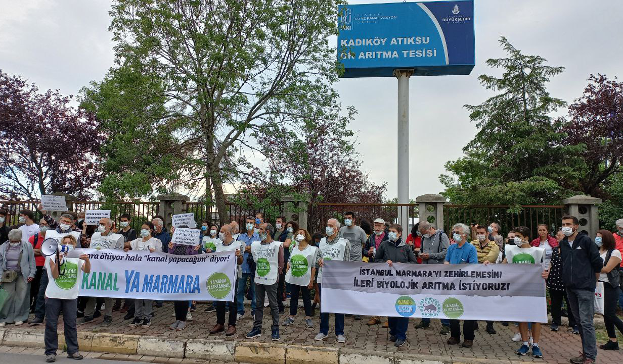 Yaşam savunucuları, Kadıköy Moda İSKİ Arıtma tesisi önünde “Marmara yaşasın” diyerek eylem yaptı. “Orman ve tarım alanlarını betona boğacak; yaban hayatını, su havzalarını ve Marmara’yı yok edecek rant projesini kabul etmiyoruz!” denilen eylemde, “Marmara ölüyor hala ‘kanal yapacağım’ diyor” pankartı açıldı