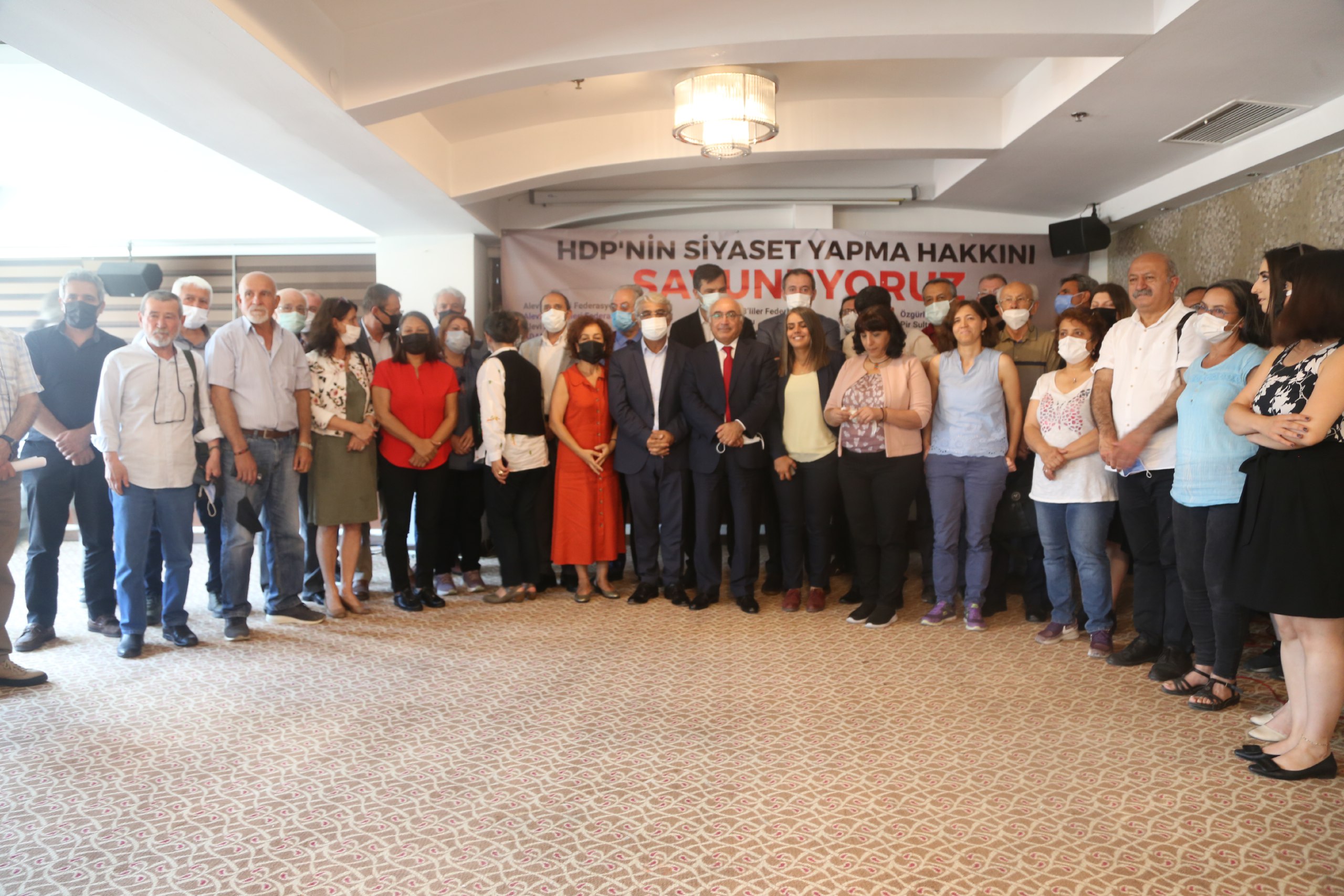 Çok sayıda meslek ve emek örgütü, “HDP’nin siyaset yapma hakkını savunuyoruz” başlıklı bir deklarasyon yayımladı. 46 kuruluşun imzacısı olduğu deklarasyon toplantısına HDP Eş Genel Başkanı Mithat Sancar’da katıldı.