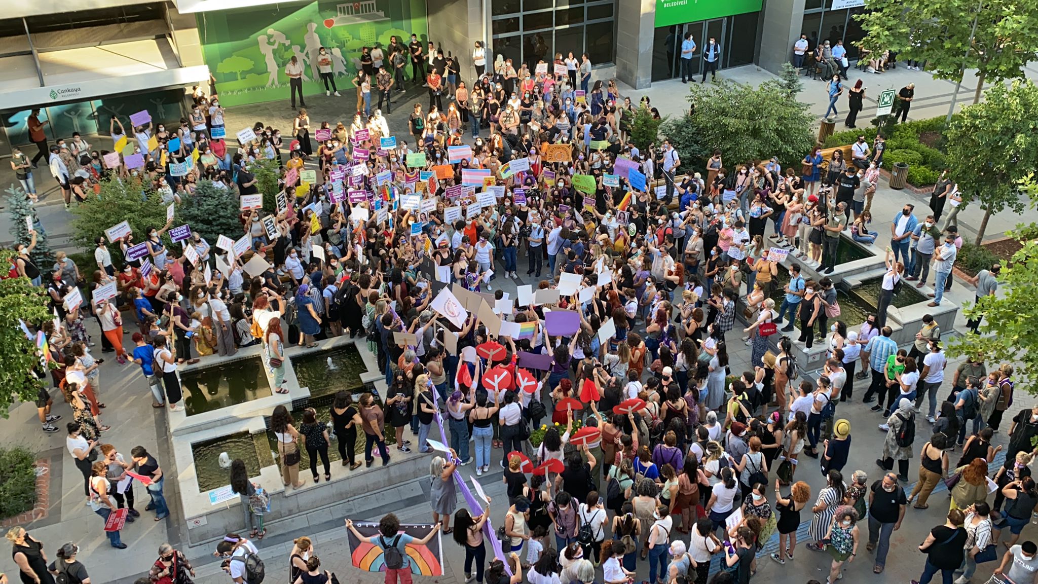 İstanbul Sözleşmesi’nin resmî fesih tarihi olması nedeniyle yüzlerce kadın ve LGBTİ+, Ankara’da eylemdeydi. Sakarya Caddesi’nde toplanan kadın ve LGBTİ+’lar konuşmalarla, sloganlarla, müzik ve dansla Sözleşme’den vazgeçmeyeceklerini birlikte söylediler