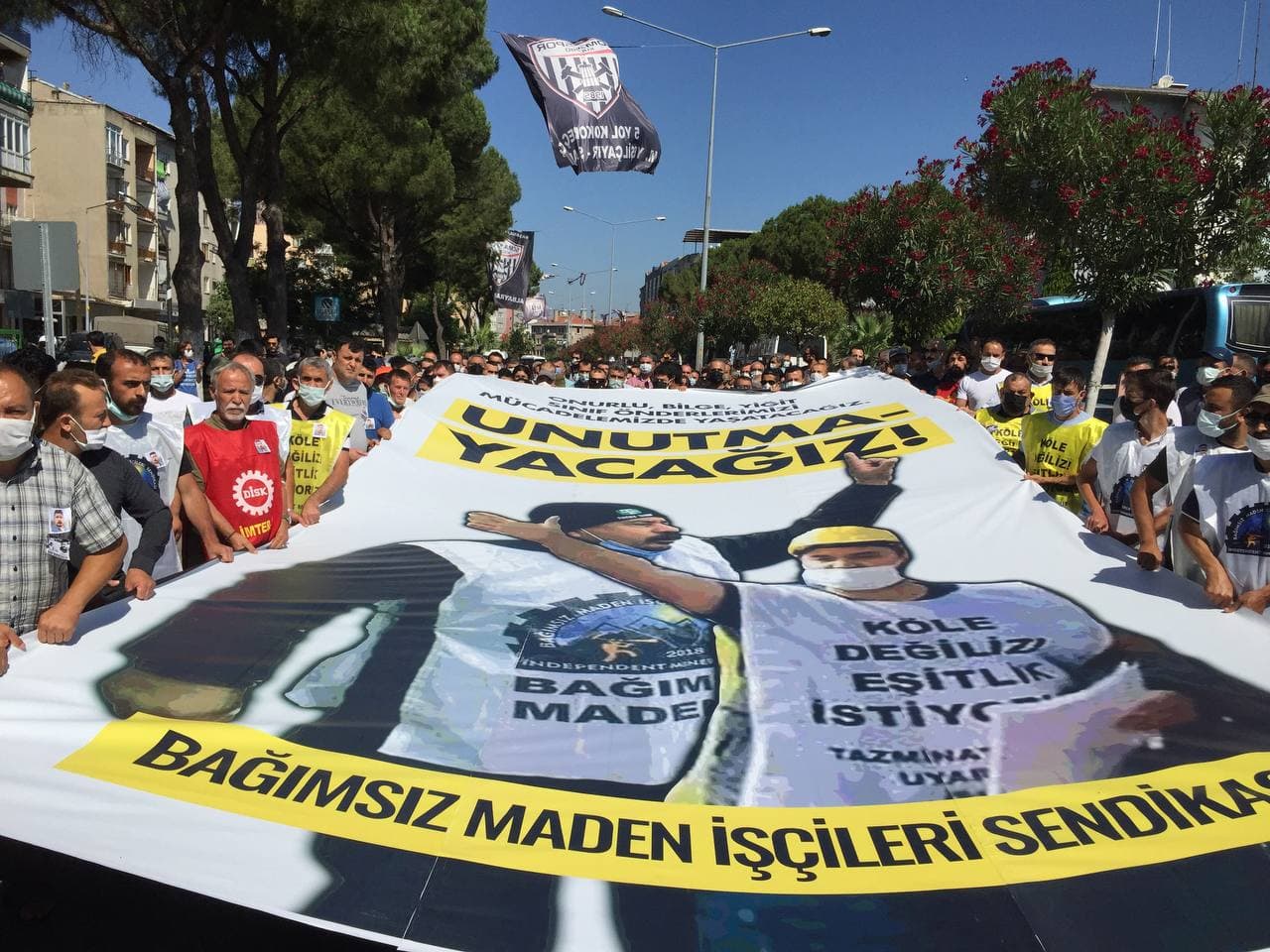 Manisa Soma’da bulunan Bağımsız Maden İş Sendikası Genel Merkezi önünde buluşmanın ardınan sendika üyesi bir maden işçisi ve Bağımsız Maden-İş Örgütlenme Sekreteri Kamil Kartal, kısa konuşmalar yaptılar. Konuşmaların ardından Soma’daki Madenci Anıtı’na alkışlarla ve sloganlarla yüründü.