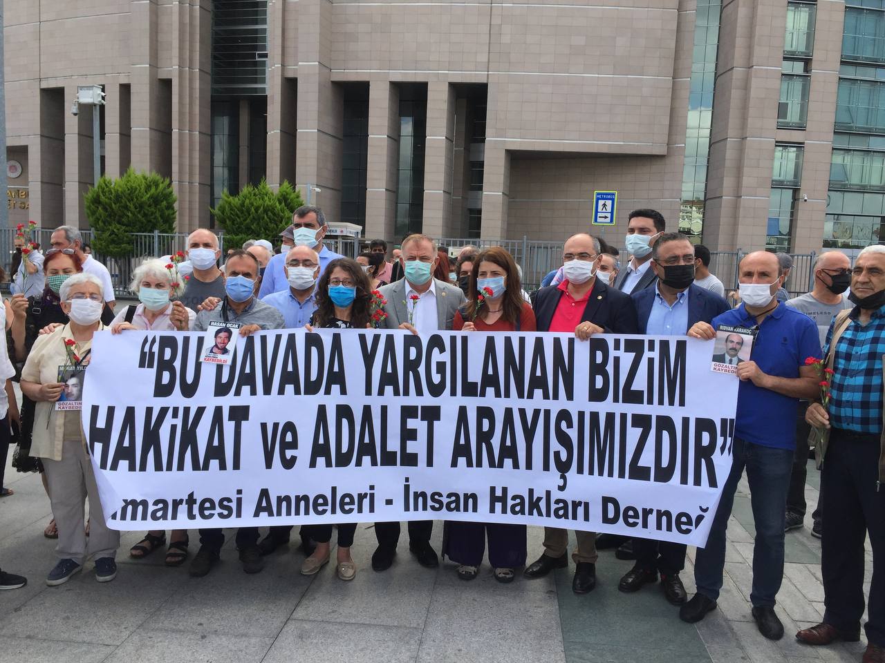 Çağlayan Adliyesi’nde 21’inci Asliye Ceza Mahkemesi’nde görülecek duruşma öncesi adliye önünde Cumartesi Anneleri ve İnsan Hakları Derneği (İHD) adına yapılan kısa açıklamada, “Bir değil bin dava da açsanız biz asıl davamızdan, ‘evlatlarımız nerede’ diye haykırmaktan asla ama asla vazgeçmeyeceğiz” denildi.