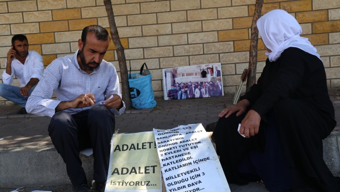 AKP Milletvekili İbrahim Halil Yıldız’ın koruma ve yakınlarının saldırısı sonucu eşi ve iki oğlunu yitiren Emine Şenyaşar ile saldırıdan yaralı kurtulan oğlu Ferit Şenyaşar’ın Urfa Adliyesi önünde “adalet” talebiyle başlattığı nöbet eylemi 127’nci gününde devam ediyor. Sabahın erken saatlerinde adliye önüne gelen aile, adliye bariyerlerinin önünde nöbetlerine başladı.