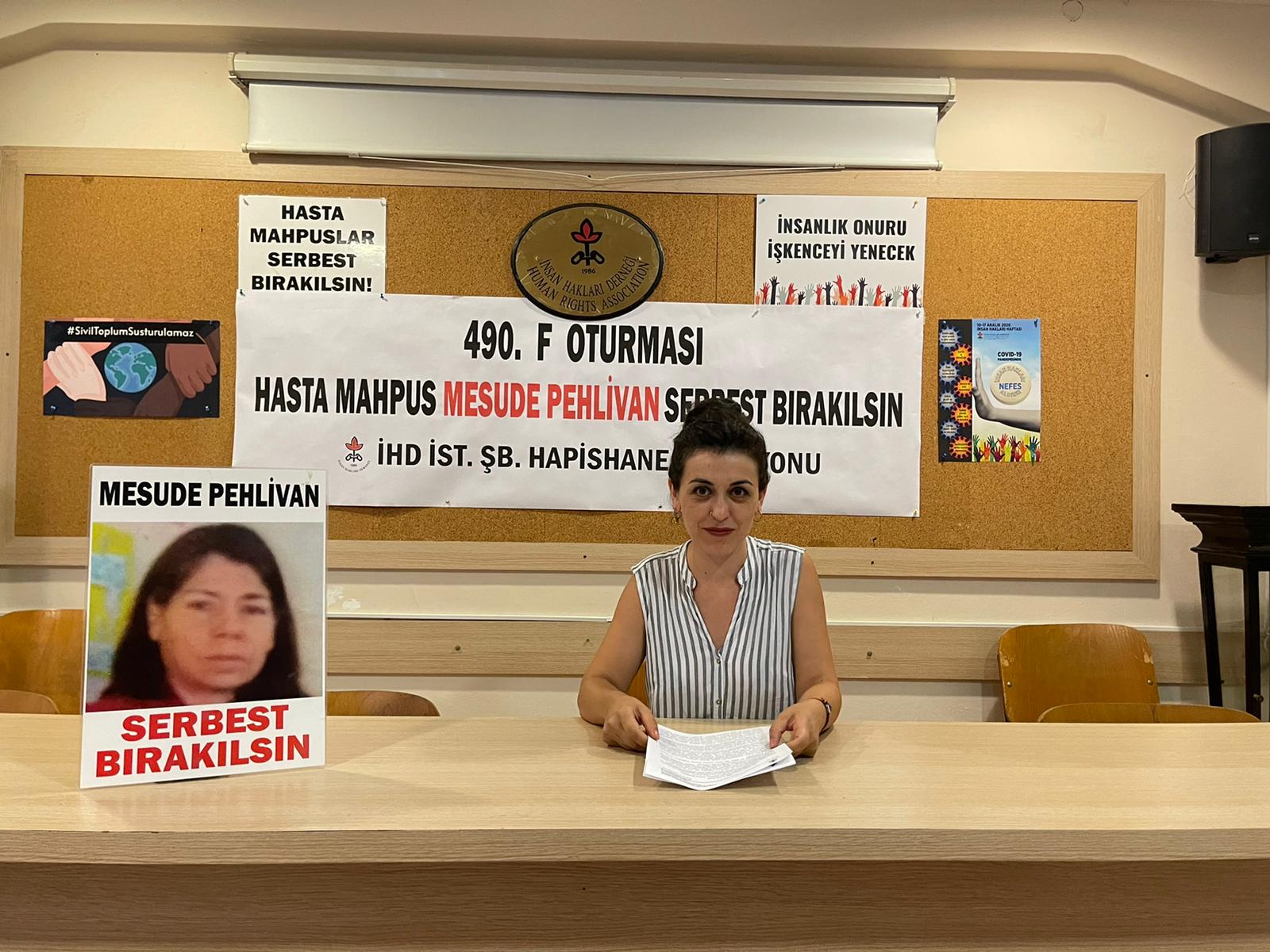 490. F Oturması, İnsan Hakları Derneği İstanbul Şubesi’nde yapıldı. Açıklamada, ağır hasta mahpus Mesude Pehlivan’ın serbest bırakılması için çağrı yapıldı