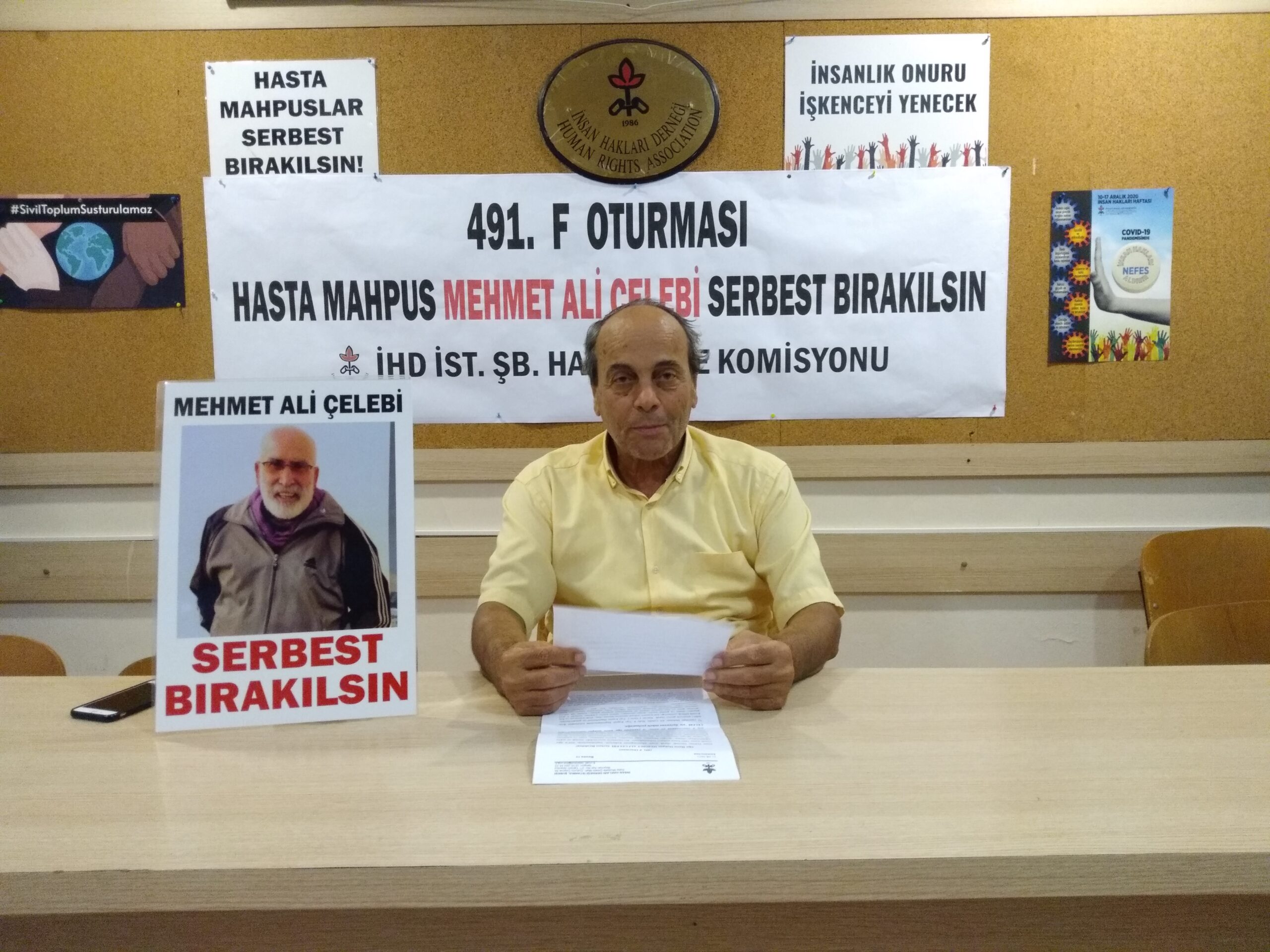 491. F Oturması, İnsan Hakları Derneği İstanbul Şubesi’nde yapıldı. Açıklamada, ağır hasta mahpus Mehmet Ali Çelebi serbest bırakılması için çağrı yapıldı