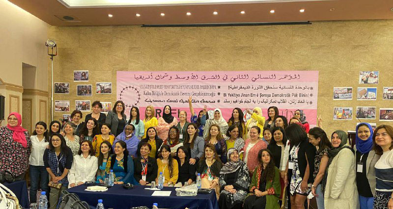İlki 2013 yılında Diyarbakır’da “Ortadoğu Kadın Konferansı” adıyla örgütlenen konferansın ikincisinde adını “Ortadoğu ve Kuzey Afrika…” diye değiştirmesinde, Ortadoğu kavramının Fas’tan Afganistan’a kadar içeren bölgeyi tanımlamak için kullanılmasına yönelik tepki ve ABD’nin emperyalist Büyük Ortadoğu Projesi’nin gölgesinden kurtulma amacı belirleyici olmuş.[1] Ve konferansta Ortadoğu ve Kuzey Afrika bölgesindeki ülkelerin/halkların dışında Sudan’dan da delegeler vardı.