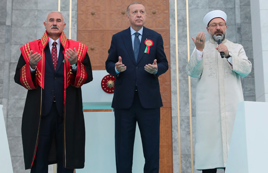 2021-2022 Adli Yıl Açılış Töreni’ne Diyanet İşleri Başkanı Ali Erbaş’ın sahneye çıkıp Yargıtay Başkanı Mehmet Akarca ve Tayyip Erdoğan ile birlikte dua ve Fatiha okuduğu sahne damgasını vurdu.