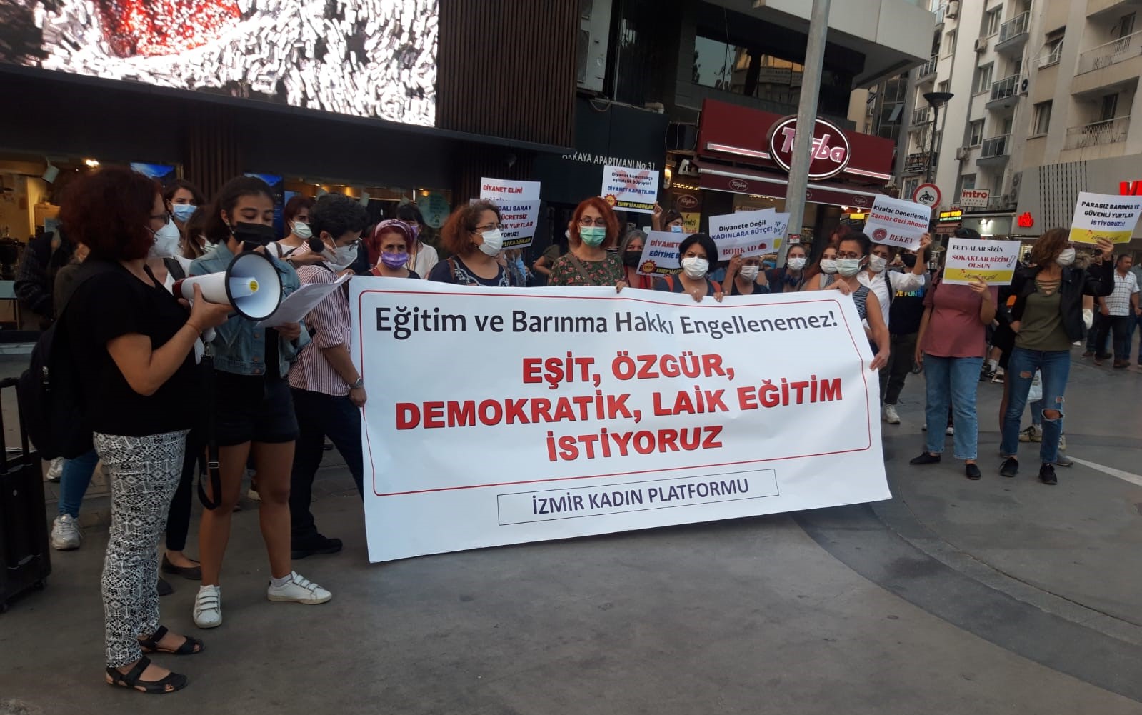 Eğitim ve barınma hakkı talebiyle demokrasi ve laiklik için açıklama yapan İzmir Kadın Platformu, eşit ve özgür bir hayatı kurana kadar mücadeleye devam edeceklerini söyledi
