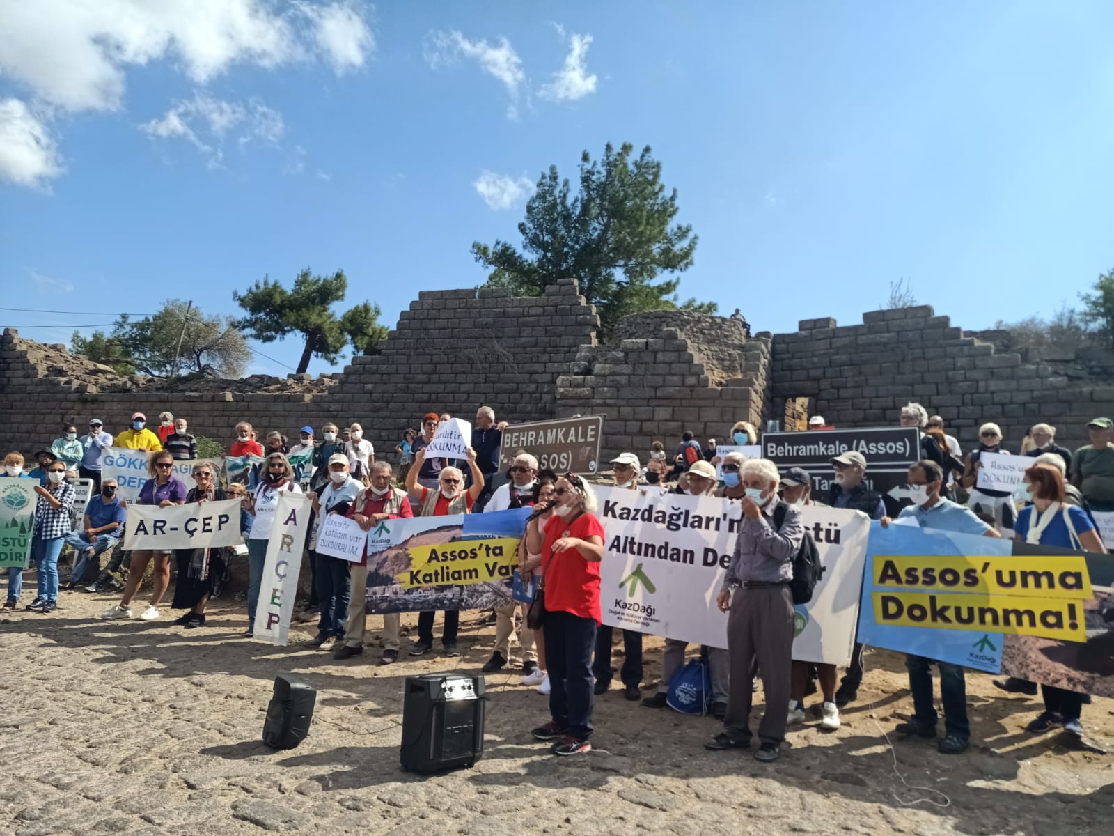 Dün (2 Ekim), Kazdağı Doğal ve Kültürel Varlıkları Koruma Derneği, Assos Dostları ve Kazdağları Ekoloji Platformu’nun çağrısı ile Assos Antik Kenti-Behramkale Köyü girişinde, “Assos’ta katliamı durduralım, Assos’uma dokunma!” denilerek basın açıklaması yapıldı.