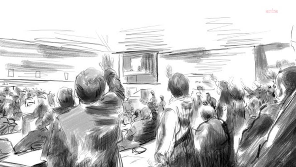 Henüz duruşmanın başında, avukatlara mahkemenin bilgi notu gösterildi, bizzat mahkeme başkanı tarafından.