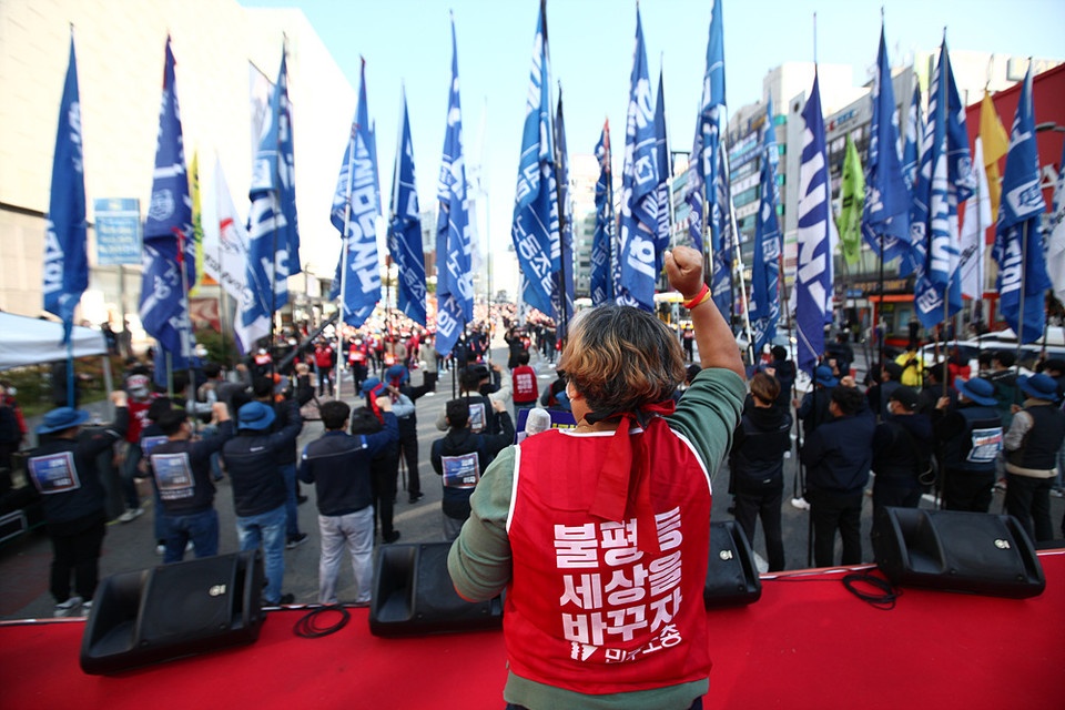 Güney Kore Sendikalar Konfederasyonu (KCTU) çağrısıyla 80 binin üzerinde işçi, örgütlenme özgürlüğüne yönelik saldırıları protesto etmek, sendikal haklar, iş güvencesi, kriz anlarında söz, yetki ve karar hakkı talep etmek için 20 Ekim’de ülke genelinde greve çıktı