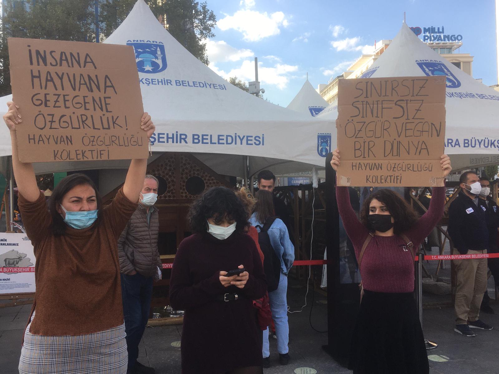 Belediyeler sadece insanların değil, insan harici hayvanların da belediyesi olmalıdır. Büyükşehir Belediyesi derhal bu sergiyi sonlandırmalı, kendi bünyesinde bulunan tüm insan harici hayvanlara yönelik sömürü biçimlerinden vazgeçmelidir. Ankara Büyükşehir Belediyesinin bir kentin ortasına bu hayvanları getirip koyacak kadar pervasız olmasının sebebi, aslında sistemin hayvanları birer mal olarak görmesidir. Hayvana yönelik şiddeti yok etmek, sömürüyü ortadan kaldırmak için atılması gereken adım bellidir. Esarete, sömürü düzenine karşı durmak ve hayvan özgürlüğünden yana olmak için vegan olmalıyız. Buradan herkesi anti-türcü mücadelede birleşmeye, vegan olmaya çağırıyoruz!