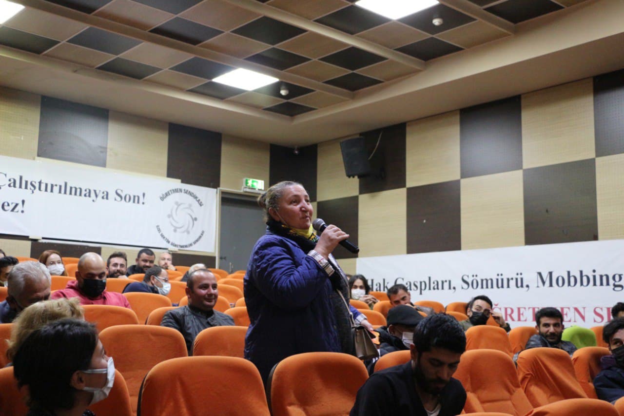 Sendika üyesi öğretmenlerden Engin Deniz Yıldırım’ın salonu selamlaması ile başlayan etkinikte açılış konuşmasını Öğretmen Sendikası Yürütme Kurulu Üyesi Eda Efil yaptı. Sendikanın kuruluş sürecine değinen Efil, sendika olarak hedeflerini şöyle ifade etti.