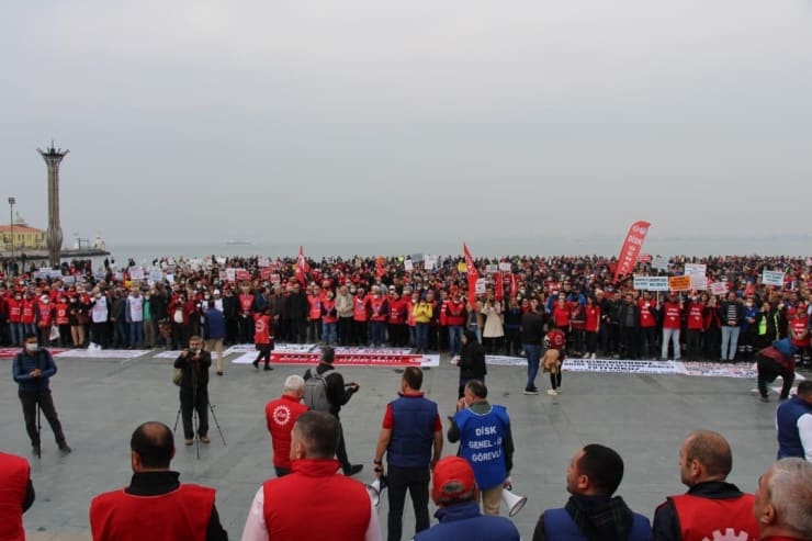 Devrimci İşçi Sendikaları Konfederasyonu’na (DİSK) bağlı işçiler, geçinemedikleri gerekçesiyle AKP’yi protesto etti. İzmir Cumhuriyet Meydanı’na yürüyen işçiler “Hükümet istifa” sloganları attı