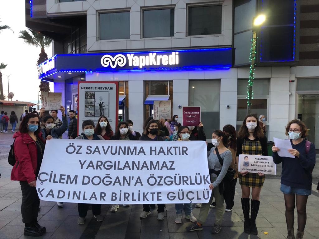 Eylem, “Özsavunma haktır, yargılanamaz”, “Çilem Doğan onurumuzdur” ve “Çilem Doğan’a özgürlük” sloganlarının ardından sona erdi.