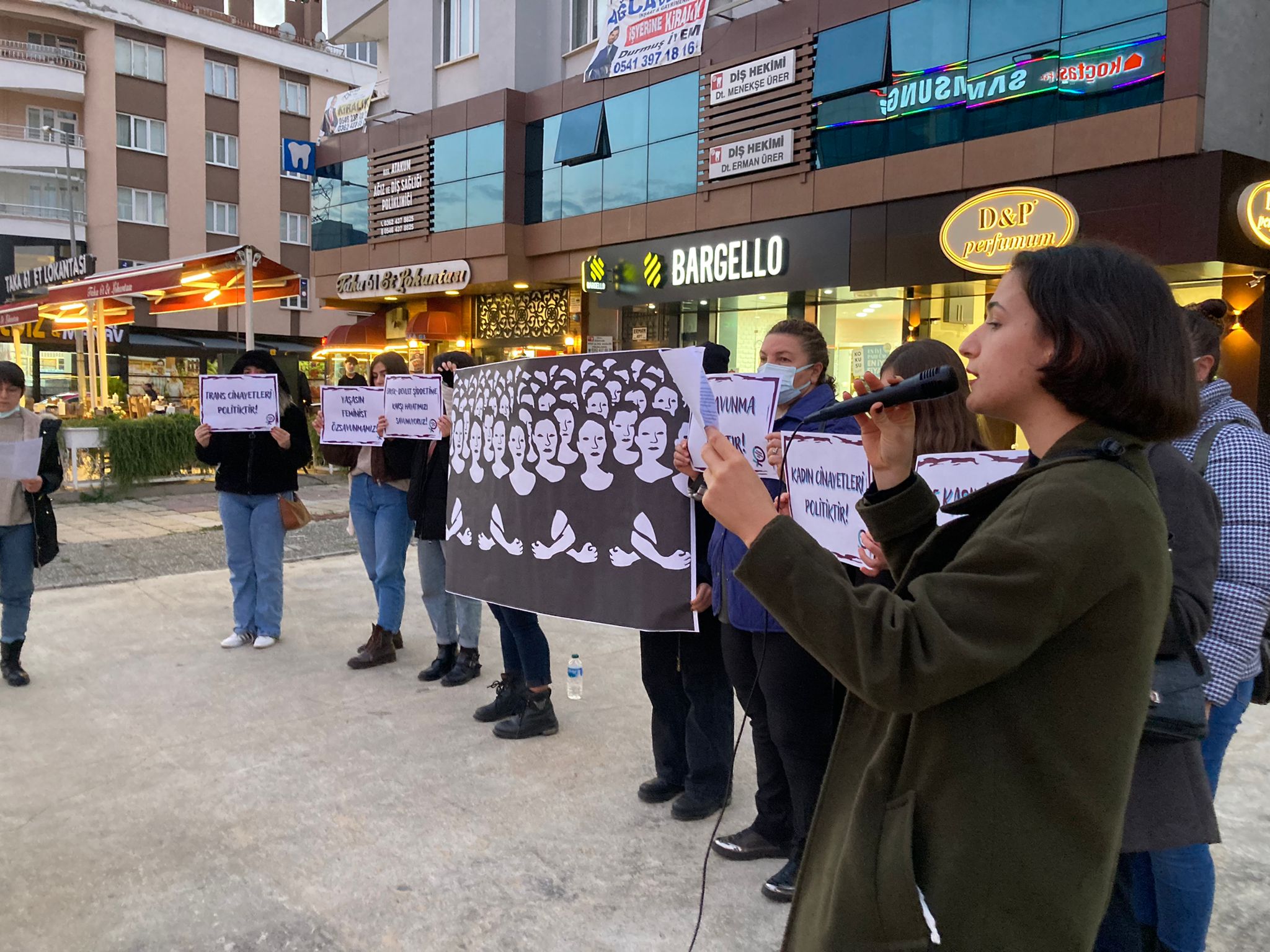 İki gün önce evli olduğu erkeğin sistematik şiddeti nedeniyle intihar ettiği söylenen Münevver aslında dayanışmak adına kadınlara derdini anlattı ve polise başvurdu. Her intihar toplumsal bir cinayettir ve bu cinayetin faili sadece Münevverin kocası değil, erkek-devlettir. Bugün bizimle aynı saatlerde Münevver için arkadaşlarımız Okmeydanı’nda eylemde. Biz de hem buraya gelemeyip Okmeydanı’nda eylemde olan arkadaşlarımız hem de Münevver için buradayız.
