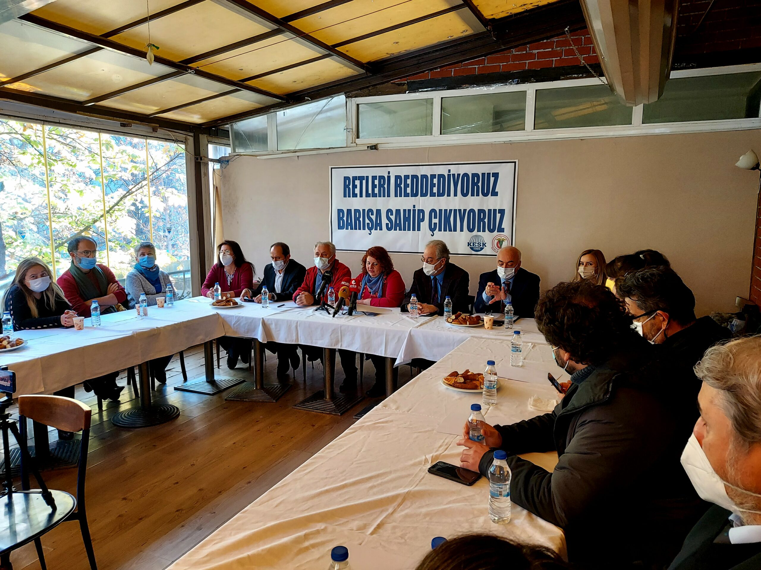 Anayasa Mahkemesi’nin ihraç edilen Barış Akademisyenleri hakkında ifade özgürlüğü ihlâli kararı vermesine rağmen OHAL Komisyonu’nun başvurular hakkında peş peşe ret vermesinin ardından Kamu Emekçileri Sendikaları Konfederasyonu (KESK) ve Türk Tabipler Birliği (TTB), Ankara’da ortak bir açıklama yaptı. OHAL Komisyonu’nun kararlarının hukuku çiğnediğinin ifade edildiği açıklamada “Ret’leri reddediyoruz, barışa sahip çıkıyoruz” denildi
