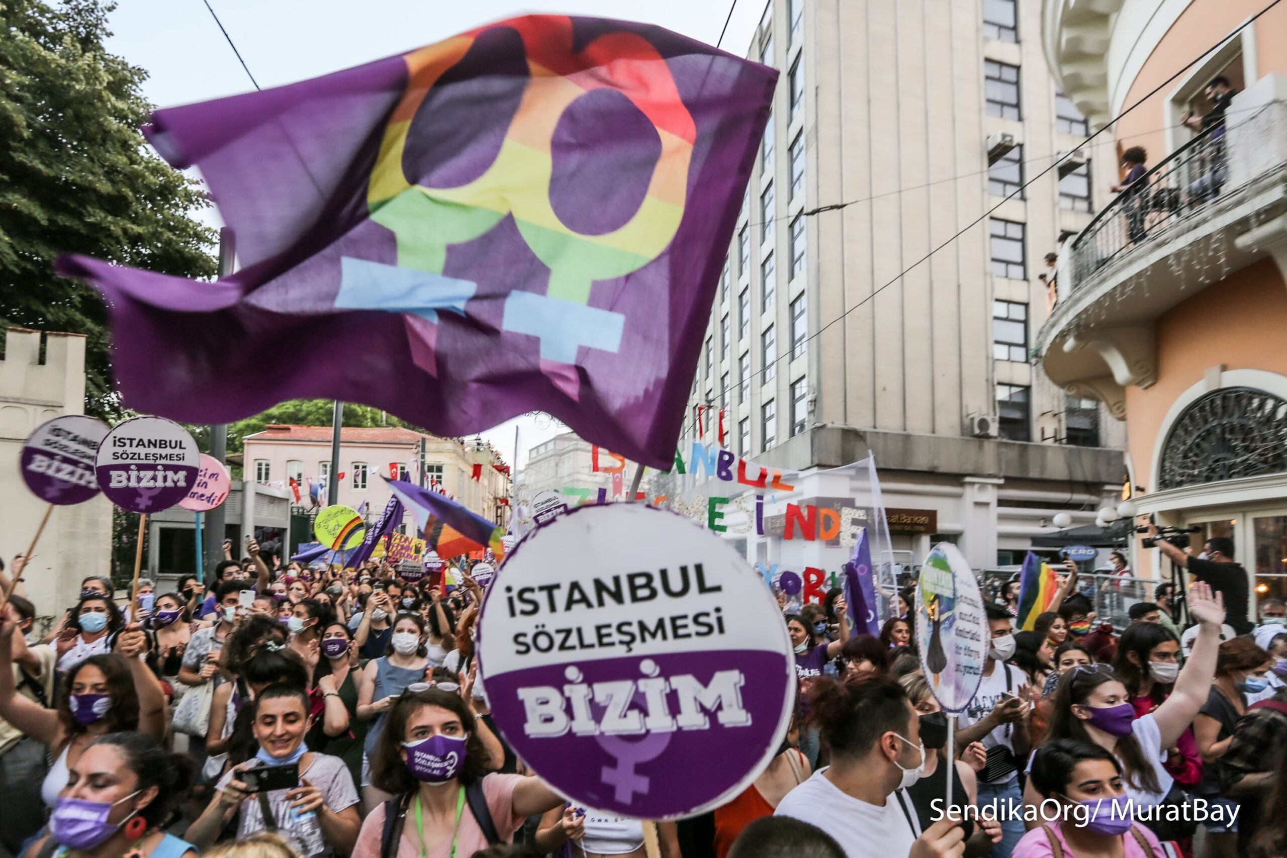 İstanbul Sözleşmesi’nin uzunca bir süre hedef gösterilmesinin ardından, Türkiye 1 Temmuz 2021’de resmi olarak sözleşmeden çekildi. İstanbul Sözleşmesi’nin en temel özelliği şiddeti önlemeyi, cinsiyetçi işbölümü ekseninde derinleşen toplumsal cinsiyet eşitsizliğinin temellerini zayıflatma eksenine oturtması ve LGBTİ+’lara da şiddet karşısında güvence verebilmesiydi. İktidar homofobinin, mizojininin ve gericiliğin üzerine oturttuğu karşı tezlerle toplumu İstanbul Sözleşmesi etrafında kutuplaştırdı. İstanbul Sözleşmesi’nden çekilinmesi kadınları saldırıya daha fazla açık hale getirse de bu süreç mücadele zeminini genişletti ve kadınlarla LGBTİ+’lar arasındaki görünmez duvarı da ortadan kaldırmış oldu.
