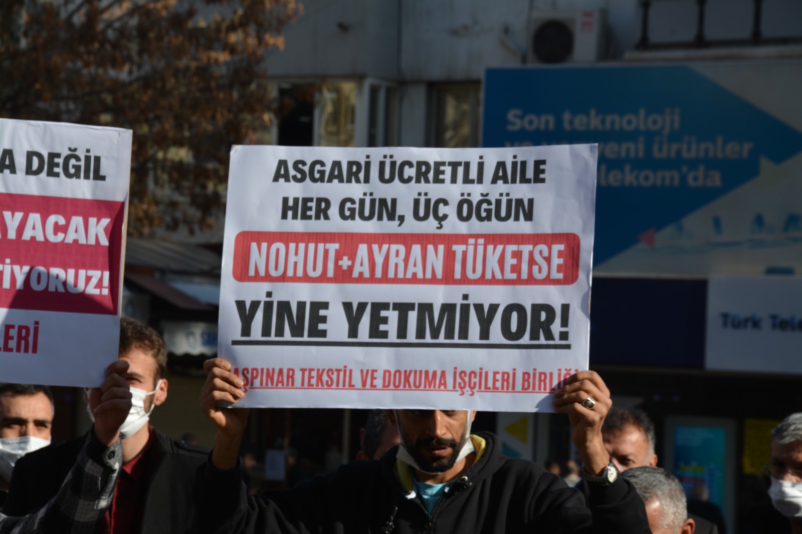 İşçiler adına açıklamayı Mehmet Türkmen yaptı. Yapılan açıklamada gelen zamlarla birlikte enflasyonun yüzde 60 seviyesine geldiği ifade edilirken Gaziantep Valiliğine mektup yazarak çocuğuna bakamadığını ifade eden baba hatırlatıldı. “Çocuklarına bakamayan sadece bu işçi kardeşimiz değil. Çünkü en temel tüketim mallarının fiyatı en az iki kat arttı” denilen açıklamada ekmekten yağa kadar pek çok gıda fiyatının fahiş şekilde arttığı ifade edilirken sıklıkla telaffuz edilen 4000 TL’nin yeterli olmayacağına dikkat çekildi.