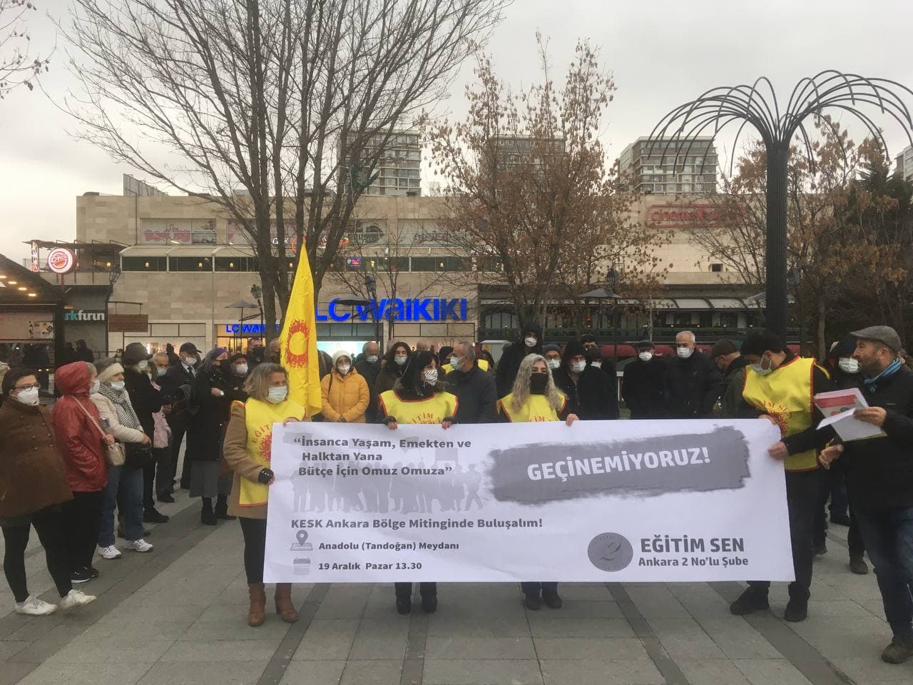 Batıkent Meydan’da bir araya gelen eğitim emekçileri yaptıkları açıklamada TL’nin değersizleştirilmesiyle yaşanan yoksullaşmanın derinliğine, işsizlikteki rekor seviyeye, geniş kesimlerin yoksulluk içinde kıvranırken bir avuç yandaş bürokratın birkaç maaşı birden almasına dikkat çekildi. “Mesele kaynak olmaması değil, iktidarın ve sermayenin tercihleridir” denilen açıklamada yoksullaştırmanın bir politika olduğu ve kasıtlı olarak uygulandığı vurgulandı.