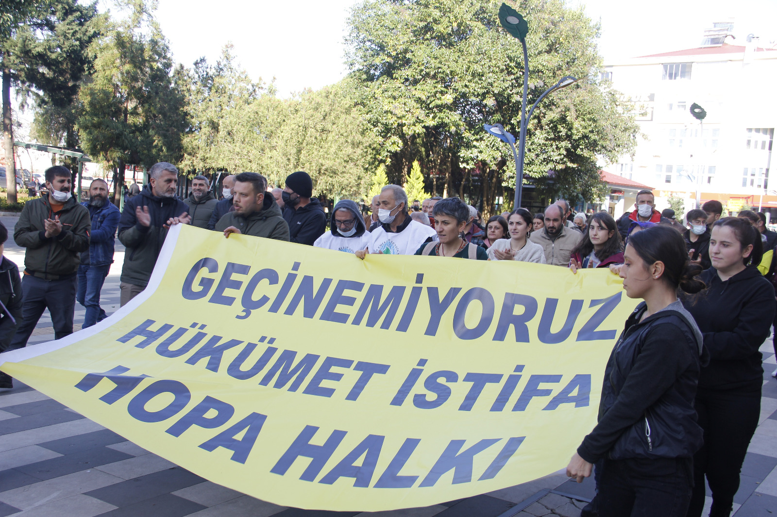 Hopa Parkı’nda bir araya gelen Hopalılar, “Geçinemiyoruz, hükümet istifa” pankartı ile yürüyüş yaptı. Yürüyüşe katılanlar sık sık “Hükümet istifa” sloganı atarken, çevredeki yurttaşlarda yürüyüşe destek verdi.