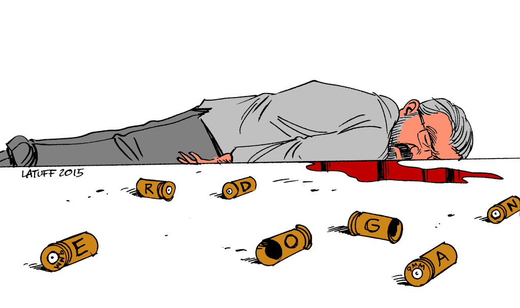 Karikatürist Carlos Latuff, Diyarbakır Baro Başkan Tahir Elçi’nin katledilişini konu alan çiziminde olay yerindeki mermi kovanlarının üstüne E-R-D-O-G-A-N harflerini yazmış ve karikatürünü twitter hesabından “Türkiye’de Kürt insan hakları savunucusu, avukat Tahir Elçi’nin katledilmesinin ardında kimin olduğunu görmek zor mu?” şeklinde paylaşmıştı.