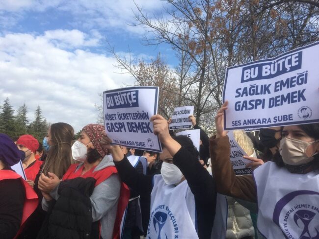 Ek gösterge düzenlemesinin sadece hekimleri kapsamasına karşı çıkan sağlık emekçileri, bütün sağlık emekçilerini kapsayan bir düzenleme talebiyle Ankara’da iş bırakma eylemi yaptı