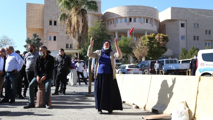 AKP Urfa Milletvekili İbrahim Halil Yıldız’ın koruma ve yakınlarının saldırısı sonucu eşi ve iki oğlunu yitiren Emine Şenyaşar ile saldırıdan yaralı kurtulan oğlu Ferit Şenyaşar’ın Urfa Adliyesi önünde devam ettirdikleri Adalet Nöbeti 287’nci gününde devam ediyor.