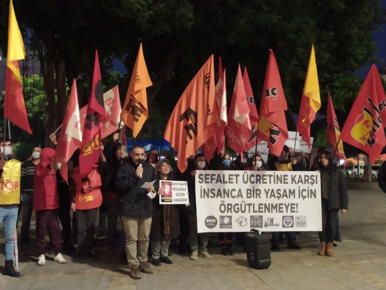 Asgari ücretin dolar bazında geçen yıla göre düşük olarak belirlenmesi ve alım gücünü koruyamayan bir zamla açıklanmasına karşı Halkevleri, Birleşik Mücadele Güçleri, Fatih Öktülmüş Kültürevi, Ekmek ve Onur, Kaldıraç, Türkiye İşçi Partisi ve Toplumsal Özgürlük Partisi Adana’da ortak eylem yaptı