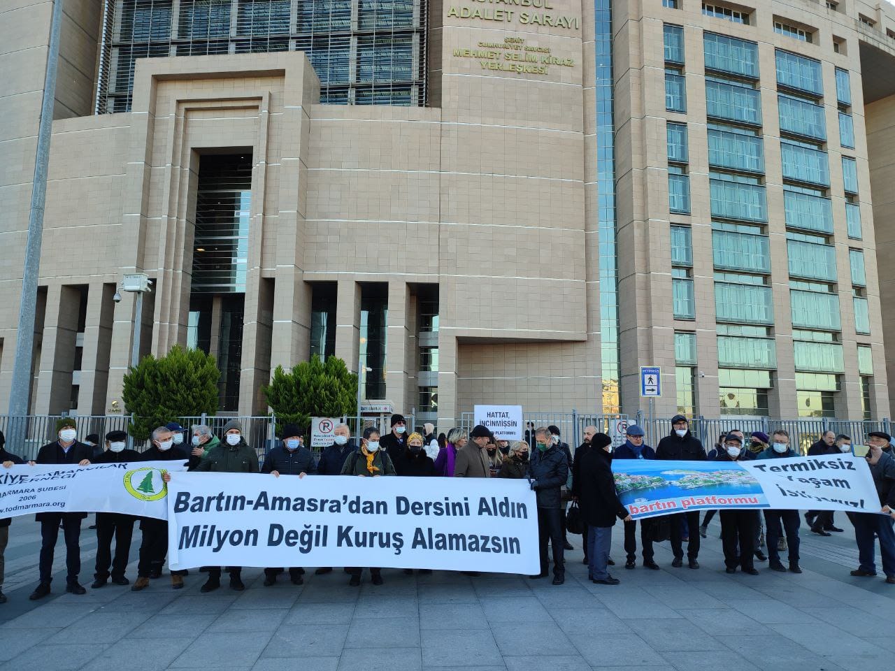Amasra’da termik santral kurmak isteyen Hattat Holding, Bartın Platformu Eş Sözcülüğünü yürüten Amasra Belediye Başkanı Recai Çakır’a ve Amasra Belediyesi’ne 1 milyon liralık tazminat davası açmıştı. Davanın ilk duruşması Çağlayan’da bulunan İstanbul Adliyesi’nde görüldü. Dava öncesi Adliye önünde yapılan açıklamada “Davanın asıl amacı hukuki zaferle sonuçlanan termiksiz yaşam mücadelesini cezalandırmak ve mücadele edenleri sindirmektir” denilerek doğa ve yaşam mücadelesine devam sözü verildi
