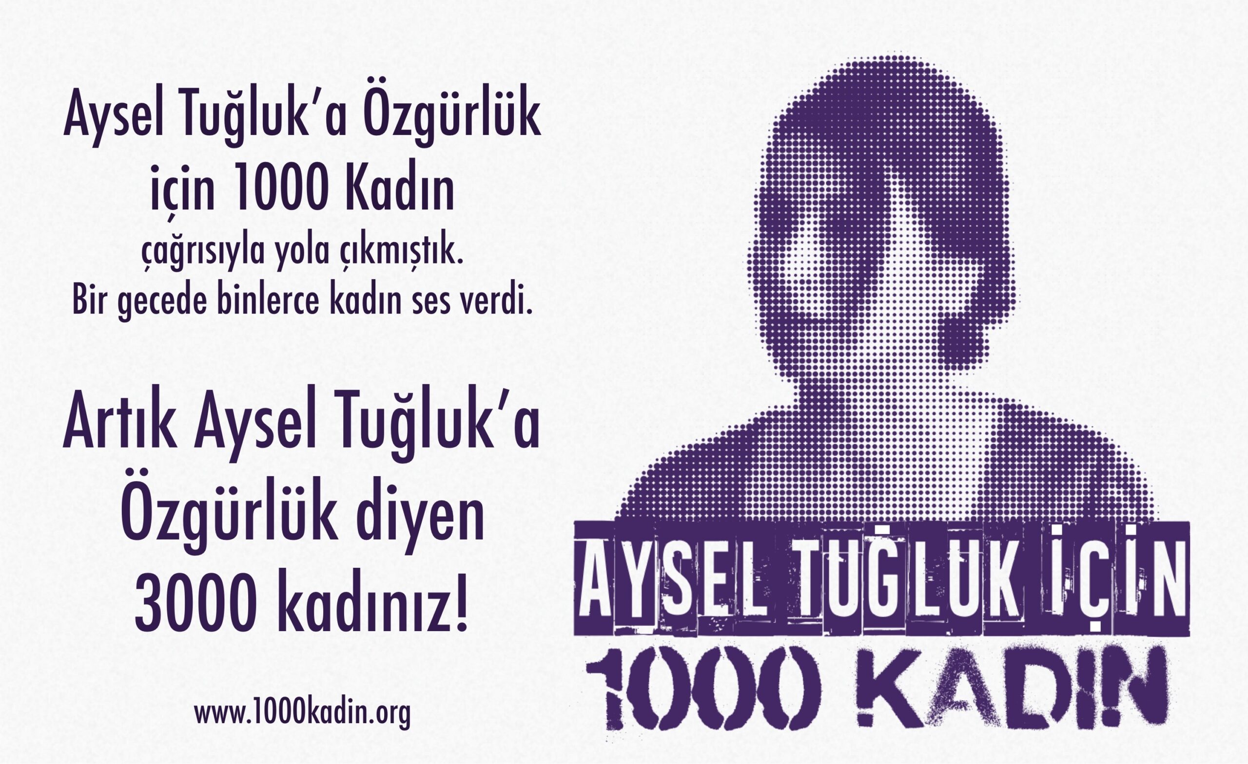 Sağlığı dolayısıyla cezaevinde kalması uygun görülmeyen Aysel Tuğluk tüm itirazlara rağmen Kandıra 1 No’lu F Tipi Kapalı Cezaevinde tutuluyor. Kocaeli Üniversitesi Tıp Fakültesi Araştırma ve Uygulama Hastanesi Adli Tıp Ana Bilim Dalı tarafından hazırlanan raporda, Tuğluk’un hastalığından kaynaklı cezaevinde kalamayacağının söylenmesine rağmen İstanbul Adli Tıp Kurumu (ATK), Tuğluk hakkında “Cezaevi şartlarında infazına devam ettirebilir” kararı verdi. Kadınlar, “Aysel Tuğluk’a Özgürlük için 1000 Kadın” çağrısıyla bir imza metni yayınladı. “Aysel Tuğluk’a Özgürlük İçin 1000 Kadın” kampanyasına bir gecede farklı ülkelerden ve kentlerden farklı mesleklerden 2545 kadının imzasıyla paylaşıldı.