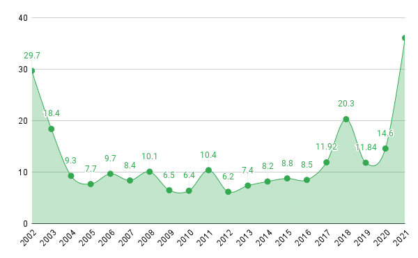 Enflasyon oranı, Ak Parti’nin iktidara geldiği 2002 yılından beri en yüksek seviyesine geldi. (Grafik: YetkinReport)