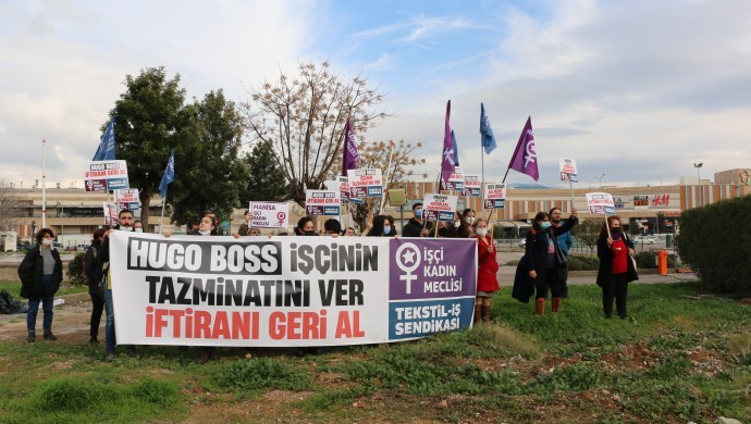 İzmir’in Gaziemir ilçesinde Ege Serbest Bölge’de faaliyet gösteren Hugo Boss Fabrikası’nda 17 yıldır çalışan dikim operatörü Mevlüde Ünal, 5 Ekim 2021 tarihinde hırsızlık yaptığı öne sürülerek,“Kod-46” ile işten çıkarıldı. İşine son verilen Ünal, Gaziemir Ege Serbest Bölge Girişi önünde Tekstil-İş Sendikası ve İşçi Kadın Meclisi ile birlikte basın açıklaması yaptı. Açıklamada, “Hugo Boss işçinin tazminatını ver” pankartı açılırken, “şiddetsiz patronsuz eşit bir dünya” , “emeğimizi asla patronlara bırakmayacağız”, “tekstil işçileri asla yalnız yürümeyecek” sloganları atıldı.